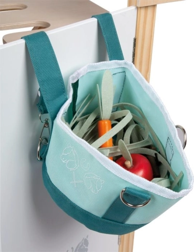 Fejleszd a gyerekek fantáziáját ezzel a lóetető készlettel, amely egy textil vödröt és fa etető- és jutalomfalatokat tartalmaz – almát, répákat, kekszeket, valamint „szénát” és „pelletet”. A masszív textil táska fogantyúkkal és karikákkal könnyen hordozható, és ideális a szerepjátékhoz, a finommotorika gyakorlásához és az állatgondozás elsajátításához.