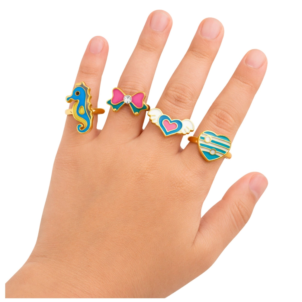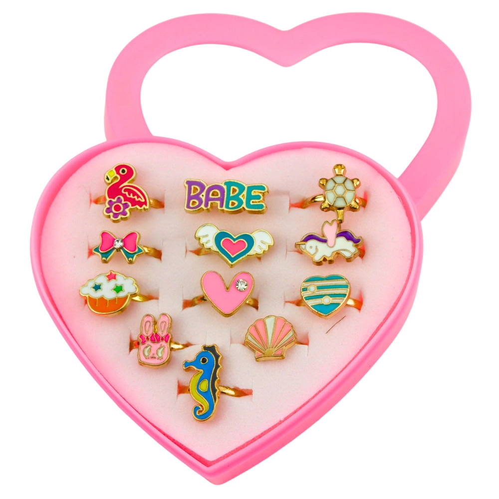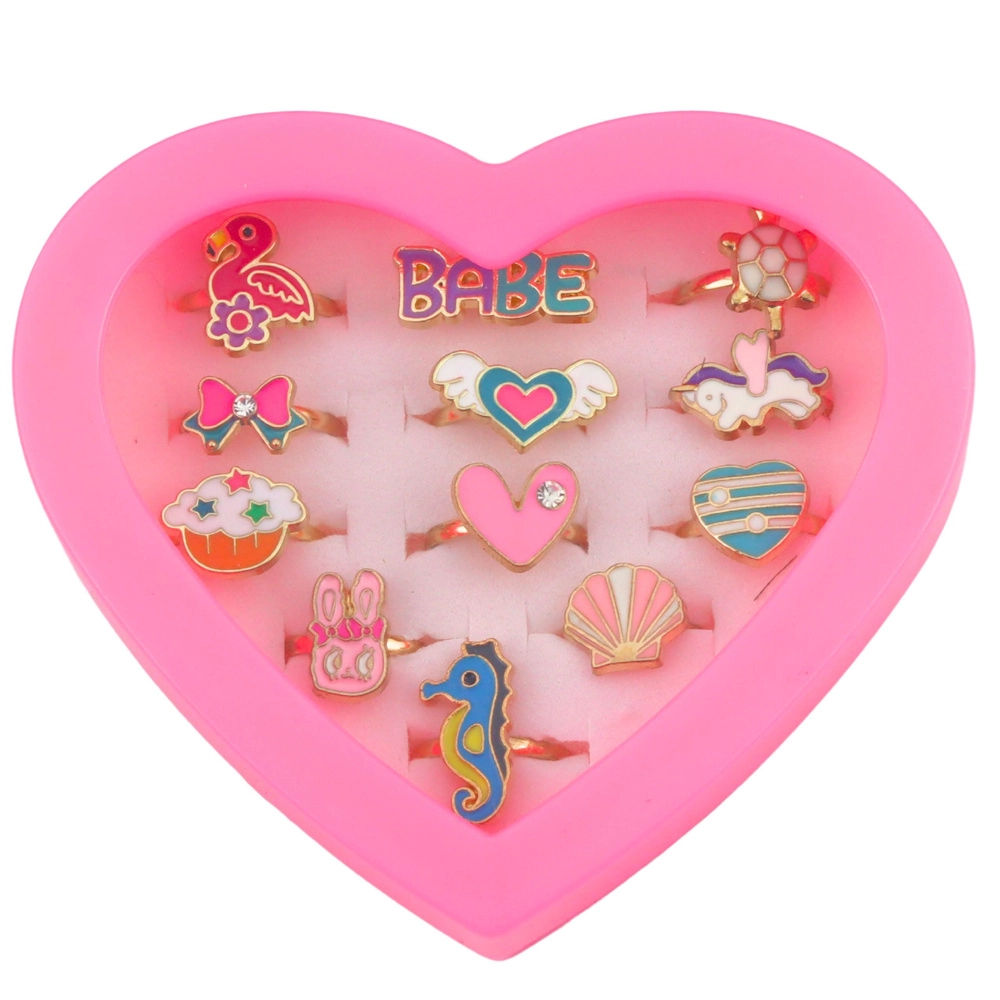 Fedezze fel ezt a bűbájos gyűrűszettet, amely támogatja a kreativitást és a fantáziát, valamint a szerepjátékot. A fém gyűrűk folyamatosan állítható kerülettel rendelkeznek, így könnyen illeszkednek a gyermeki ujjacskákra, és egész nap kényelmesek. A szív alakú, esztétikus tok praktikus tároló és csinos kiegészítő utazáshoz is.