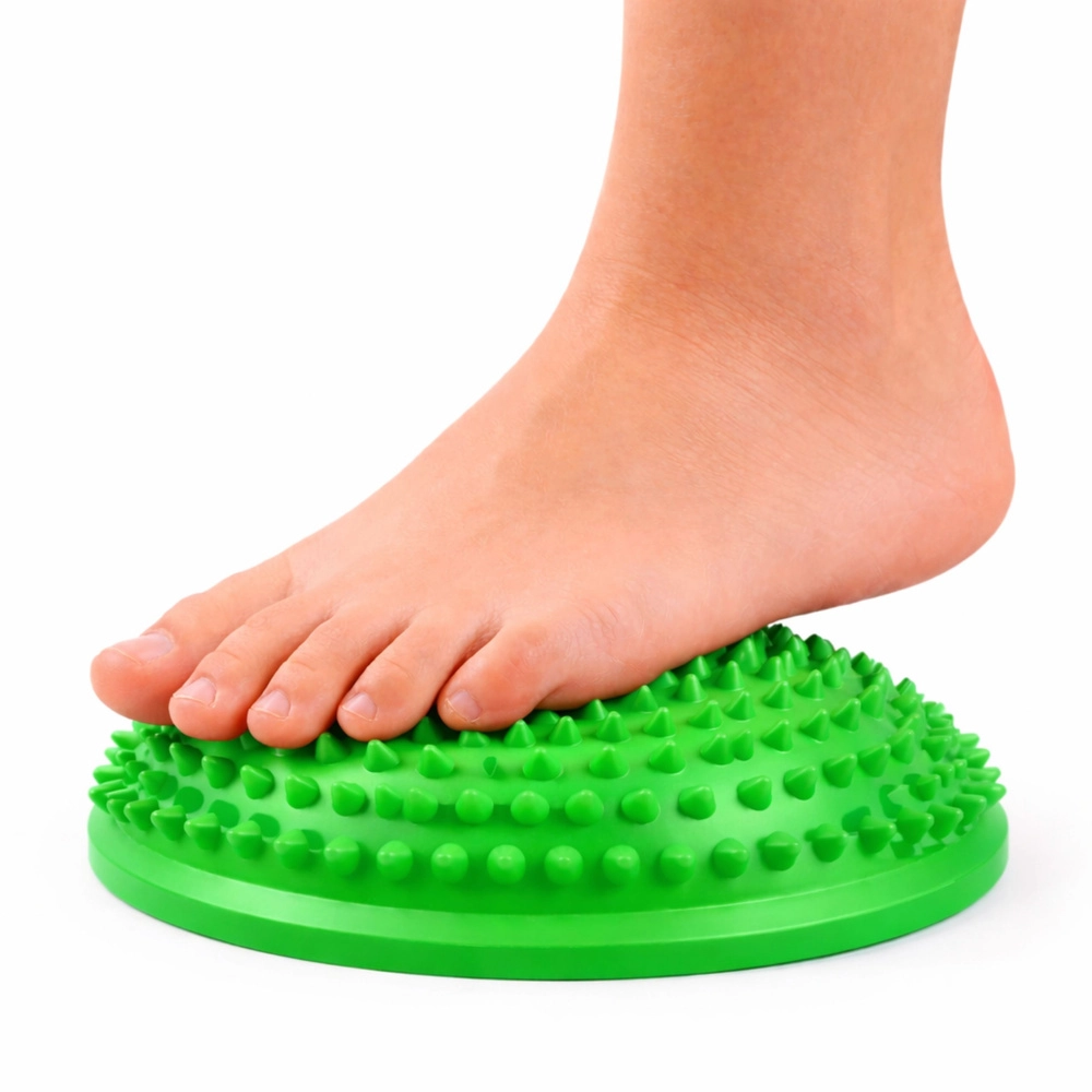 A szénzoros félgömb egyesíti az egyensúlyfejlesztést és a célzott talpstimulációt. A sűrű puha tüskékkel ellátott félgömb forma kellemes masszázst ad, amely támogatja a vérkeringést, a boltozatizmok aktiválását és a jobb propriocepciót. Alkalmas otthoni használatra, fizioterápiára, óvodákba és iskolákba, valamint testtartáskorrekciós gyakorlathoz.