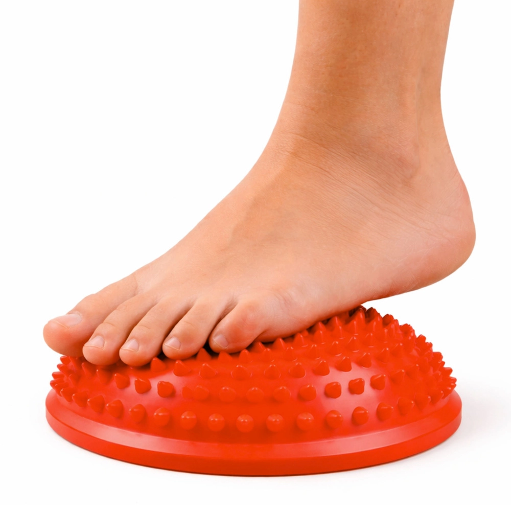 Univerzális szenzoros egyensúlyozó félgömb az egyensúly, a stabilitás edzéséhez és a talpmasszázshoz. A texturált masszázstüskéknek köszönhetően stimulálja a receptorokat, javítja a vérkeringést és támogatja a helyes testtartást. Alkalmas rehabilitációhoz, fizioterápiához és otthoni edzéshez.