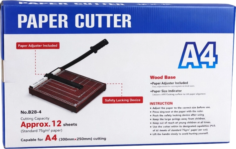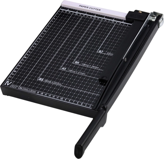 Ez az A4-es papírvágó guillotine ideális irodába, iskolába, nyomdába és otthoni műhelybe. A stabil alap mérővonalakkal és formátumjelölésekkel segít a dokumentum pontos beállításában vágás előtt. A fém vágókar hosszú karral tiszta és egyenes vágást tesz lehetővé nagy erőkifejtés nélkül.