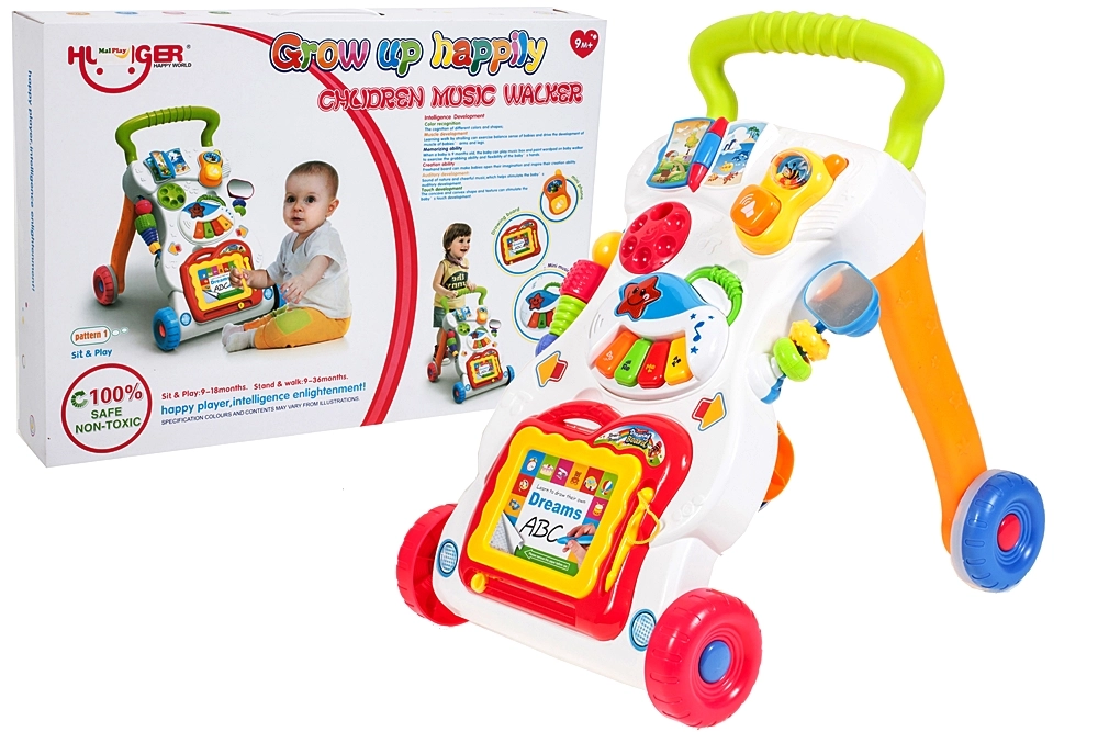 Praktikus, 3 az 1-ben gyerek járássegítő támogatja az első lépéseket, fejleszti a koordinációt és szórakoztató tevékenységeket kínál. Kompakt méreteinek köszönhetően ideális lakásba, kerekei szilikon szalagokkal rendelkeznek a finom fékezéshez. A játék biztonságos, megfelel a EN71, EN62115, EN60825 és 7P szabványoknak, tápellátása 2× AA 1,5 V (az elemek nem tartozékok).