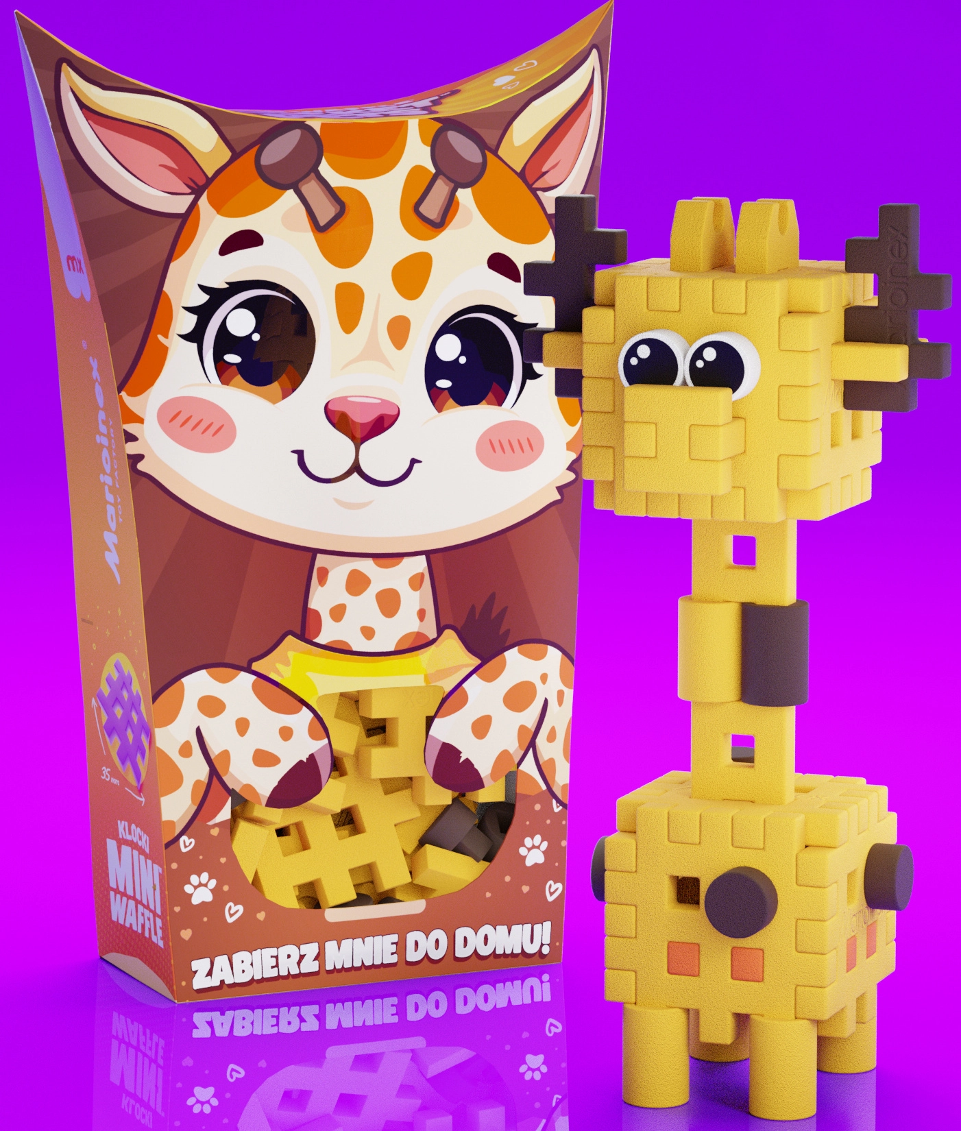 Alkossa meg a bájos zsiráf figurát, vonja be saját történeteibe, vagy kombinálja a Pocket Pets sorozat többi állatkájával. A Mini Waffle építőkészletet úgy tervezték, hogy játékos formában fejlessze a gyerekek kreativitását és mozgáskoordinációját, miközben elsajátítják a térbeli észlelés alapjait.