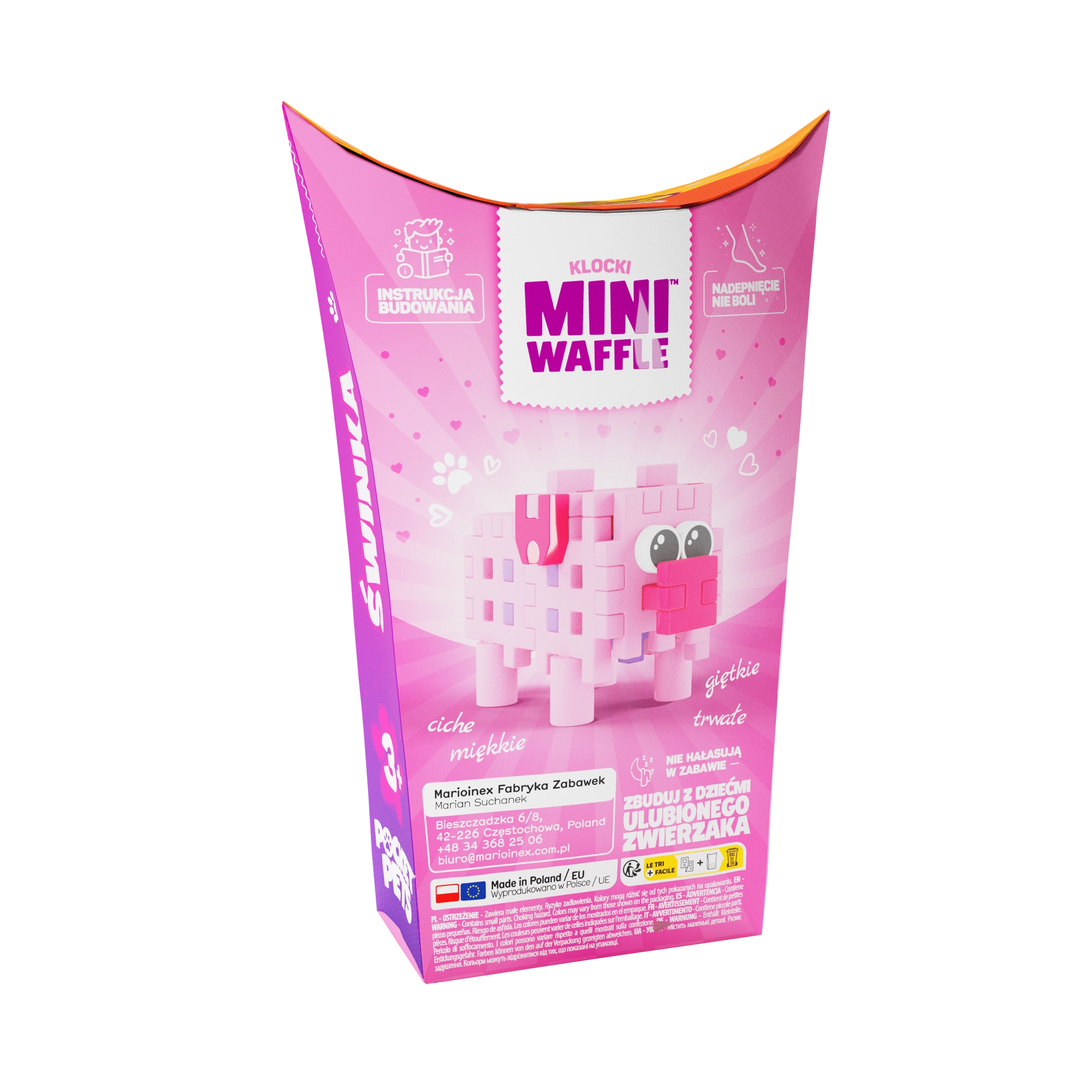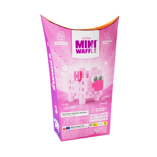 Alkoss egy apró fantáziavilágot a zsebes Mini Waffle Pocket Pets – malacka készlettel. A 2D és 3D építési lehetőségeknek köszönhetően a gyerekek játék közben természetesen fejlesztik képzelőerejüket és készségeiket. A kész figura lehet önálló hős vagy egy nagyobb állatgyűjtemény része.