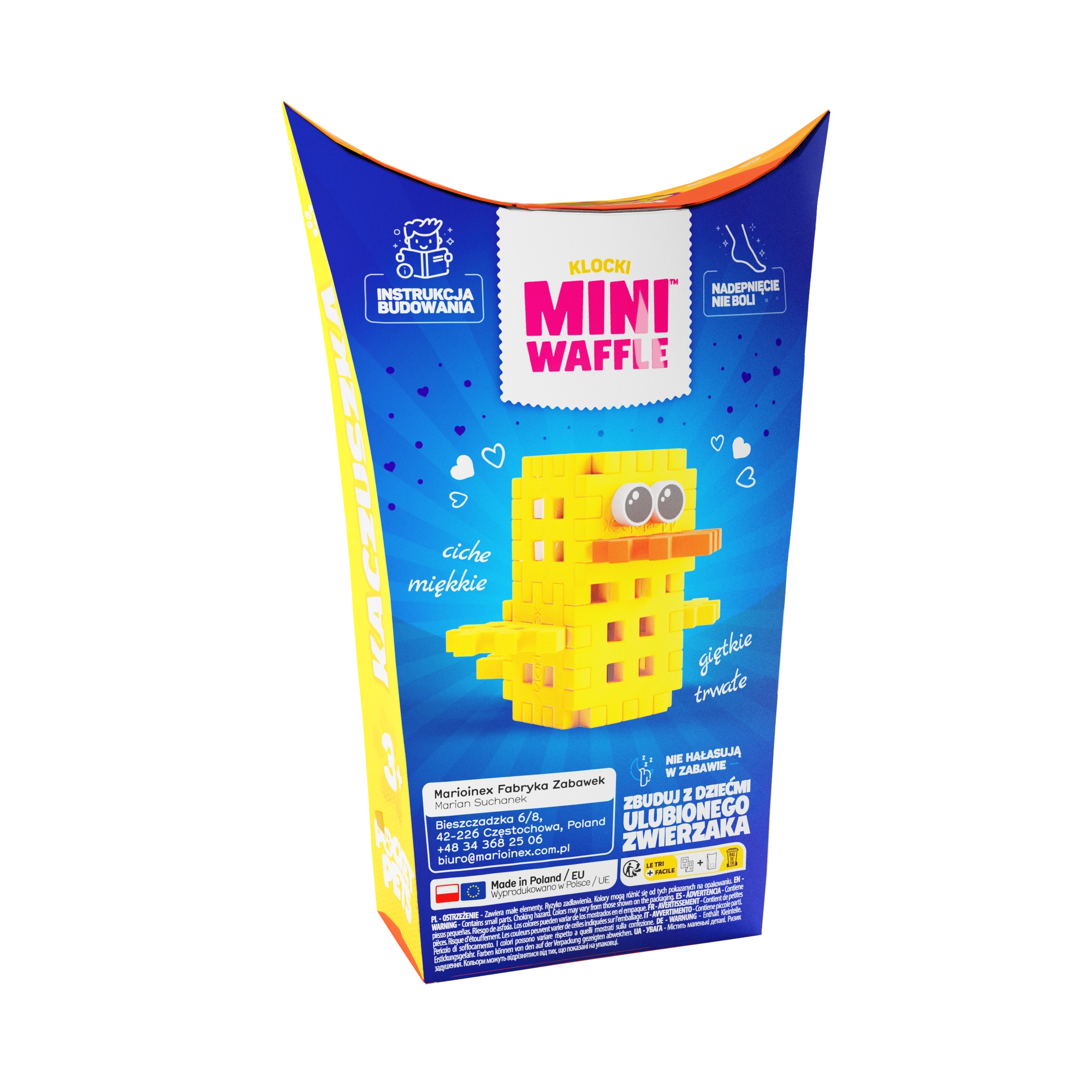 A csomag részletes, lépésről lépésre haladó útmutatót tartalmaz, így minden kis építő meg tudja alkotni a kiskacsát. Lengyelországban készült, a minőségre és biztonságra helyezett hangsúllyal.