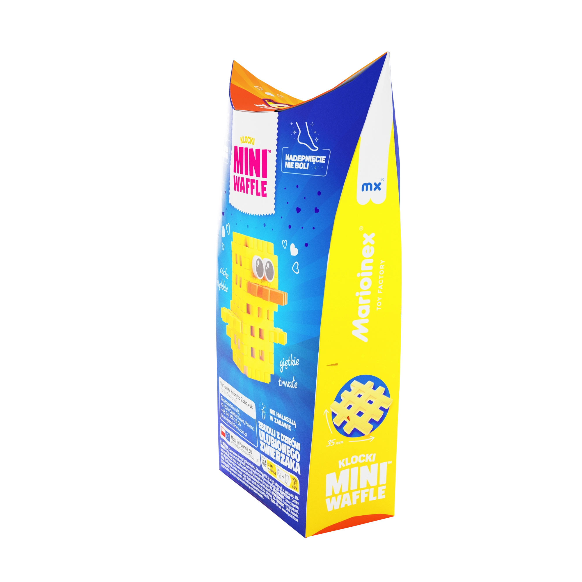 A MARIOINEX Mini Waffle Pocket Pets – Kiskacsa ideális választás gyors és értelmes szórakozáshoz otthon és útközben is. A gyerekek 2D-ben és 3D-ben is építhetnek, saját történeteket alkothatnak, és bővíthetik a Pocket Pets sorozatból álló kisállat-gyűjteményüket. Az elemek kellemesen rugalmasak, biztonságosak és ismételt építésre lettek tervezve.