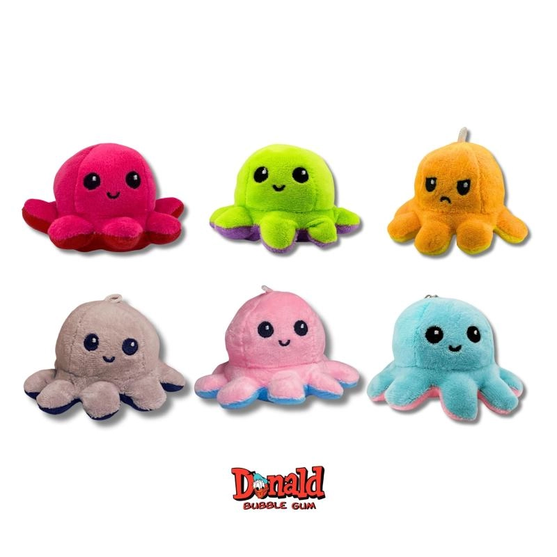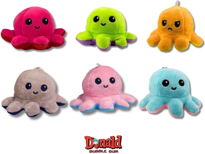 Kapszula tele örömmel kicsiknek és nagyoknak! Belül puha Flip plüss polip két markáns arckifejezéssel és 5 DONALD rágógumival. Csak fordítsd meg a polipot, és felfedezed az új megjelenését – remek szórakozás gyerekeknek és gyűjtőknek, ideális ajándék vagy kis jutalom.