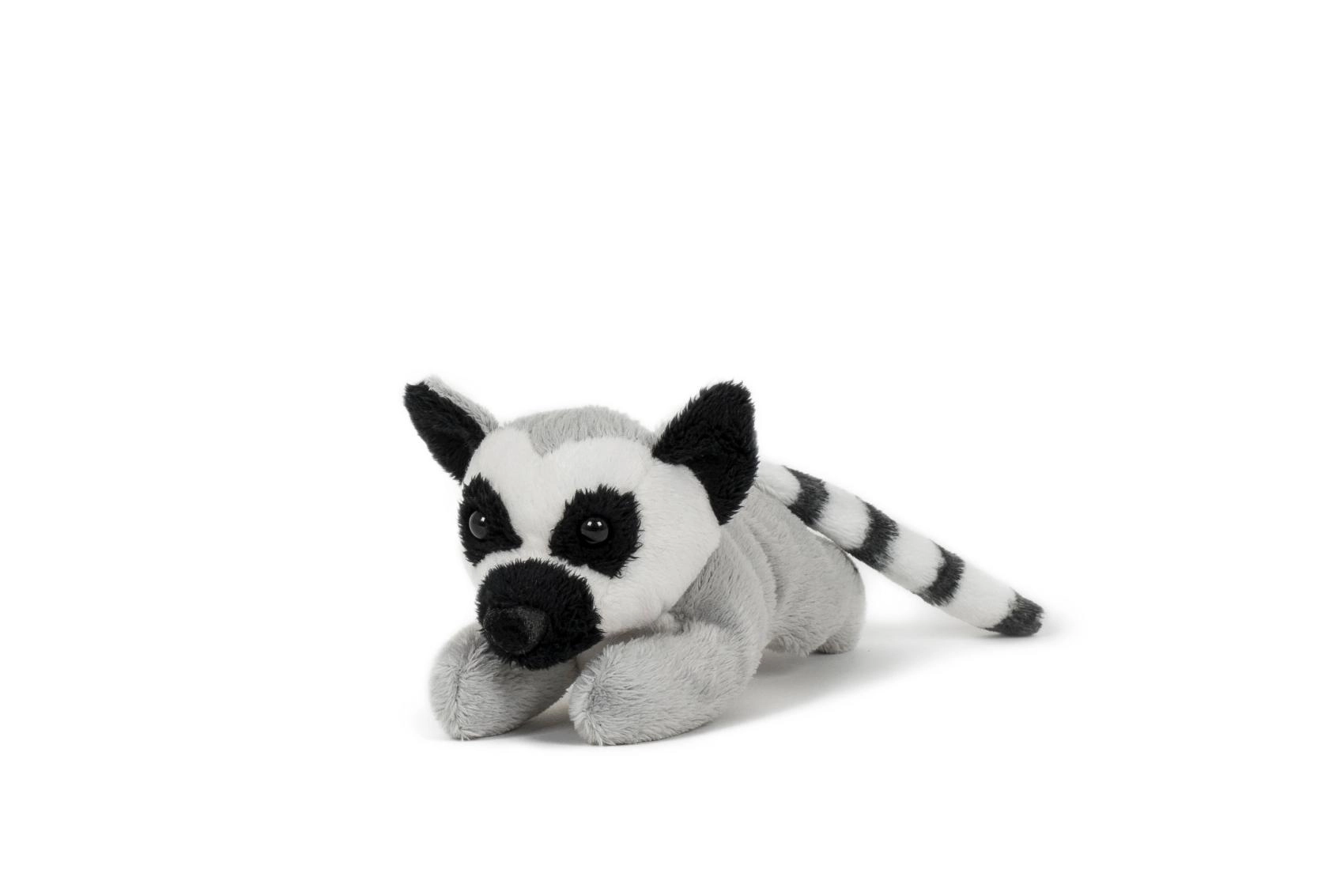 A bájos, fekvő pozíciójú gyűrűsfarkú maki plüss a jellegzetes fekete–fehér mintázatával és hosszú, csíkos farkával hívja fel magára a figyelmet. A realista kidolgozásnak, a puha, selymes anyagnak és a barátságos arckifejezésnek köszönhetően gyorsan a kedvenc ölelgetni- és játszanivaló társsá válik otthon és útközben egyaránt.
