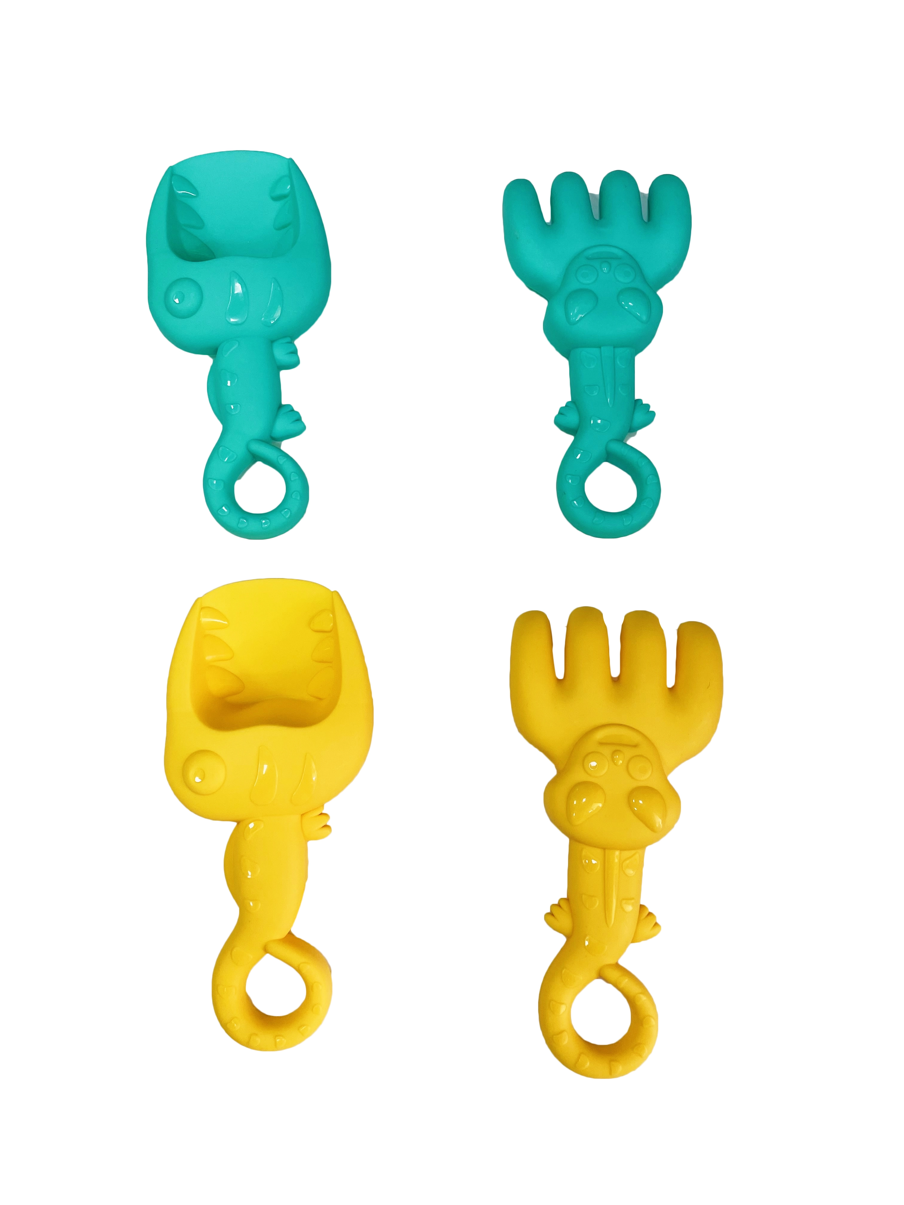 Könnyű lapát és gereblye kényelmes fogókkal, amelyek megkönnyítik a gyerekeknek az ásást, merítést és homokformázást.