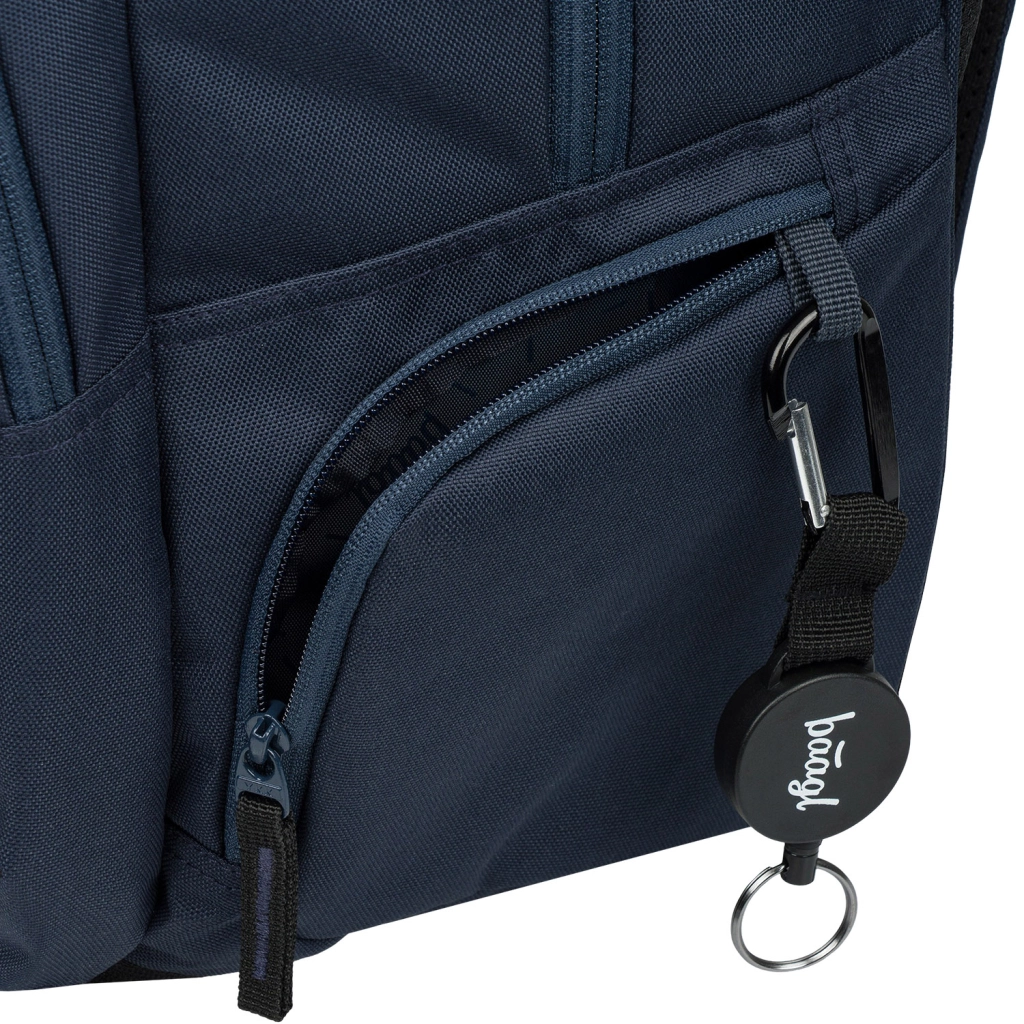Három rekesz, 17"-es laptopzseb, beépített rendszerező és önfelhúzó kulcstartó/csíptartó a holmik áttekinthetőségéért és biztonságáért.