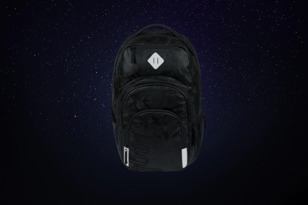 Belül három különálló rekesz, dedikált zseb 17"-es laptop számára, szervező apróságoknak, szigetelt uzsonnás zseb és párnázott szemüvegtartó zseb található. A külön zseb önvisszacsévélő kulcs/chip tartóval megelőzi az elvesztést. A minőségi YKK cipzárak és a fényvisszaverő elemek növelik a biztonságot és a tartósságot. A dupla kihajtható fülű tolltartó mindent elnyel, amire szükség van (töltet nélkül szállítva), a zsinóros zsák pedig ideális cipőnek vagy testneveléshez.