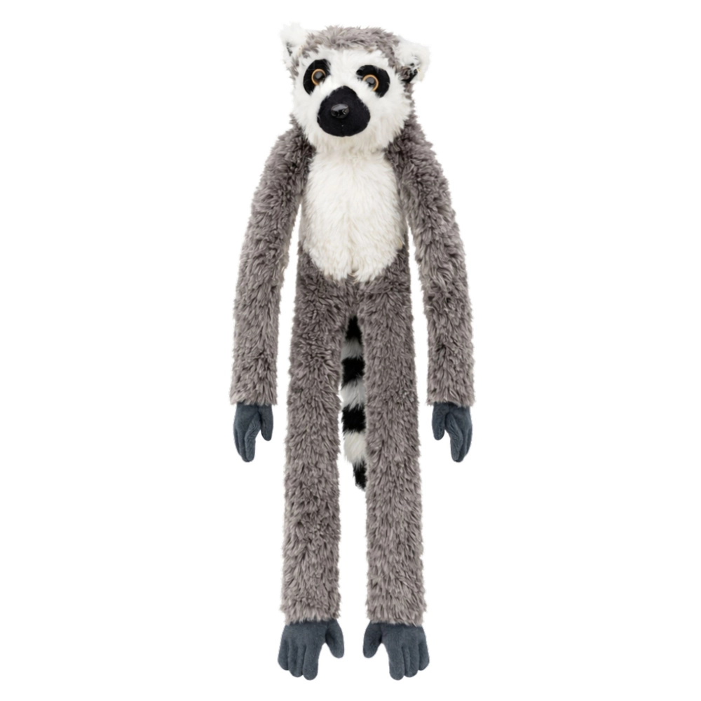 Aranyos plüss maki hosszú, hajlékony tappancsokkal és felakasztáshoz tépőzárral, tökéletes ölelgetéshez, játékhoz és a gyerekszoba díszítéséhez. Puha, selymes anyagból készült, élethű részletekkel, és a könnyű súlyozott testnek köszönhetően stabilan tud ülni.