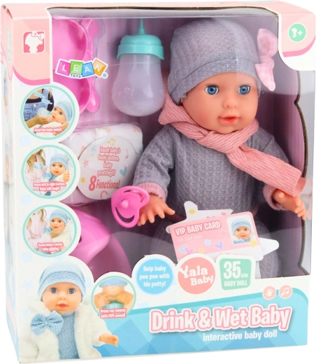 Interaktív pisilő baba 35 cm kiegészítőkkel – cumisüveg és bili