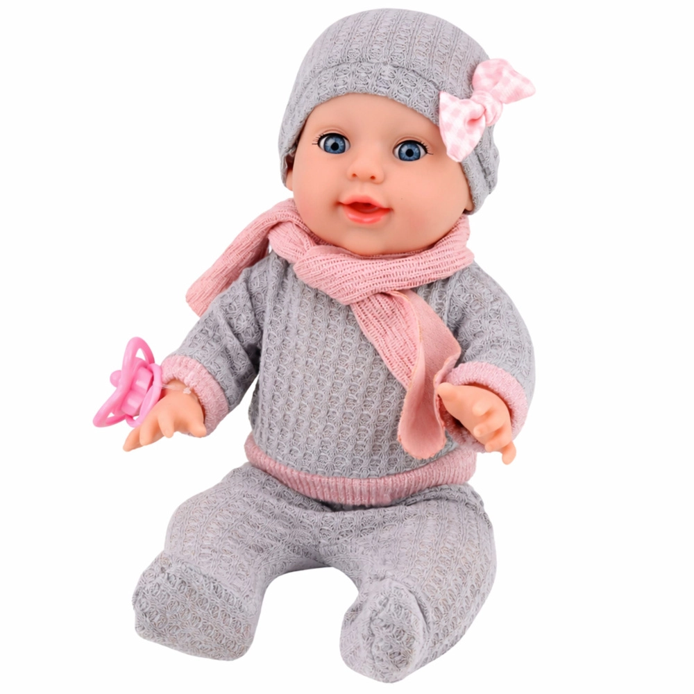 A szett részei a praktikus kiegészítők: bili, cumisüveg, cumi és gondozási kellékek, melyekkel a gyerekek könnyedén eljátszhatják az etetést, a pelenkázást és a bilire szoktatást. A részletgazdagon kidolgozott arc nagy, kék szemekkel, valamint a puha öltözet sapkával, masnival és sállal igazi babás bájt kölcsönöz a játéknak.