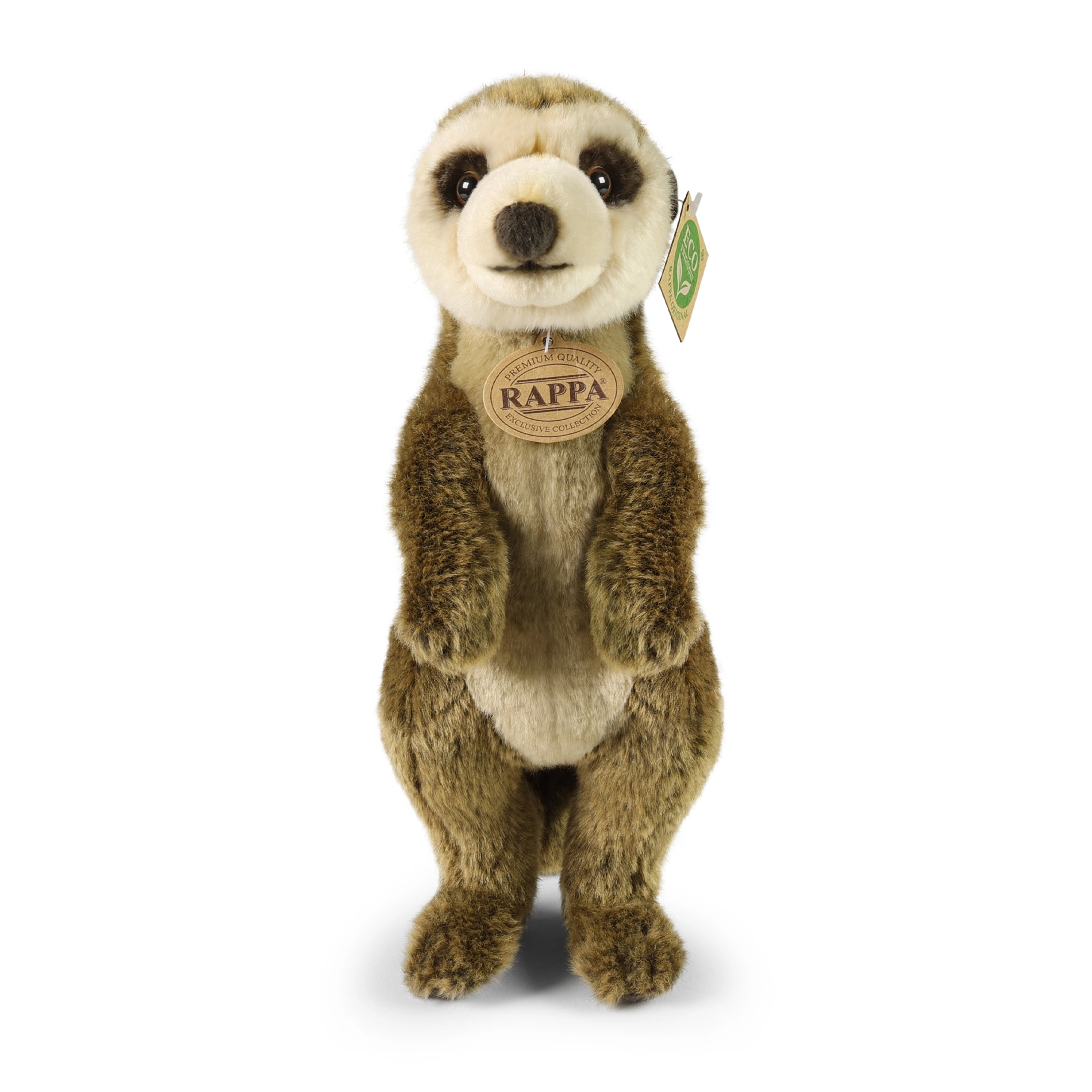 Aranyos, 31 cm magas plüss szurikáta a RAPPA exkluzív kollekciójából, amely örömet szerez gyermekeknek és felnőtteknek egyaránt. Puha plüsből készült realista részletekkel, és öko töltettel újrahasznosított anyagokból. A kézi kidolgozásnak köszönhetően élethű hatást kelt, és a legkisebbek számára is alkalmas.