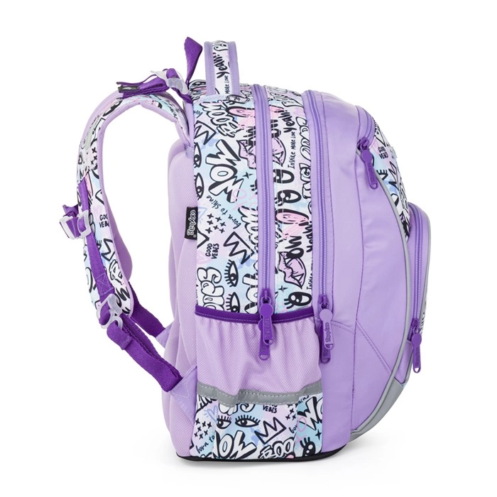 Az OXY GO Funny Girl iskolai szett átgondolt megoldást kínál az első iskolás évekhez. A 22 l-es hátizsák áttekinthető belső elrendezést kínál a tankönyveknek és füzeteknek, oldalzsebeket (cipzáras és nyitott) például palacknak, valamint horgokat a hosszabb pántvégek rögzítésére. Az ergonomikusan formázott, szellőző hátkialakítás párnázott, állítható vállpántokkal a mindennapos viselésnél is kényelmet nyújt.