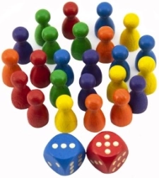 Pótlék fa figurák 25 mm és 2 dobókocka társasjátékokhoz