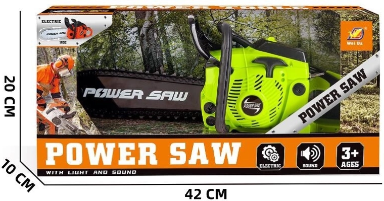Ez a gyermek láncfűrész biztonságos játék formájában nyújt autentikus faipari élményt. A fény- és hangeffekteknek, valamint a mozgó láncnak köszönhetően a játék rendkívül élethű, és fejleszti a gyerekek fantáziáját és finommotorikáját.