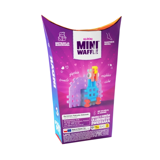 A Mini Waffle Pocket Pets pulyka egy játékos mini építőkészlet, amely elfér a zsebben, mégis nagy alkotási lehetőségeket kínál. A gyerekek színes pulyka figurát építhetnek belőle, de saját formákat és jeleneteket is létrehozhatnak. A többi Mini Waffle szettel való kompatibilitásnak köszönhetően a fantáziának semmi sem szab határt.