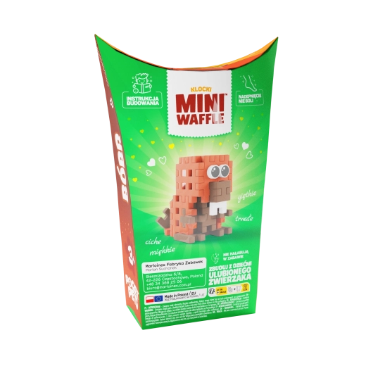 A Mini Waffle Pocket Pets – hód építőkészlet ideális választás 3 éves kortól azoknak a gyerekeknek, akik szeretnek alkotni és történeteket kitalálni. Az egyedi waffle elemeknek köszönhetően 2D-ben és 3D-ben is építhetnek, miközben saját állatos kalandjaikkal szárnyalhat a fantáziájuk. A hód figura könnyedén a Pocket Pets kollekció hősévé válhat.