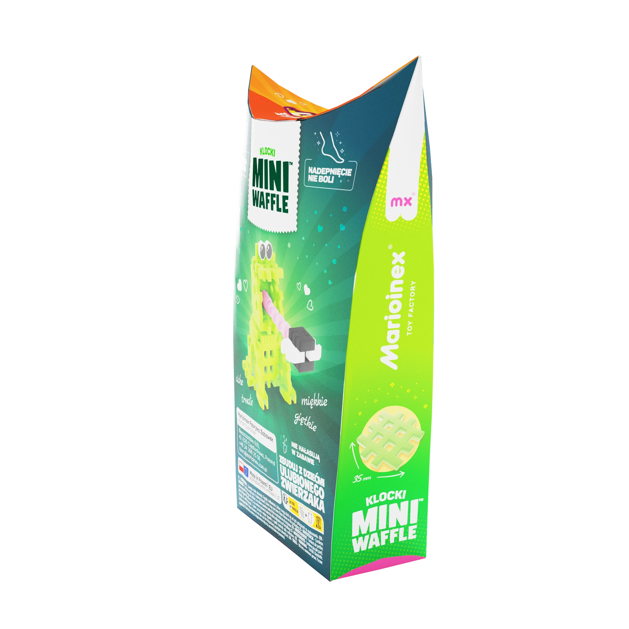 Fedezd fel a szórakozást a Mini Waffle Pocket Pets – béka építőkészlettel a Marioinex márkától. A kompakt szett 34 színes eleme lehetővé teszi, hogy a gyerekek egy aranyos béka figurát építsenek, 2D-ben és 3D-ben alkossanak, és fejlesszék a kreativitást, a finommotorikát és a logikus gondolkodást. Az elemek hajlékonyak, tartósak és biztonságosak, könnyen össze- és szétszerelhetők, és remekül kombinálhatók más Mini Waffle készletekkel.