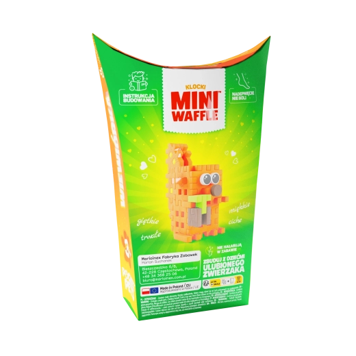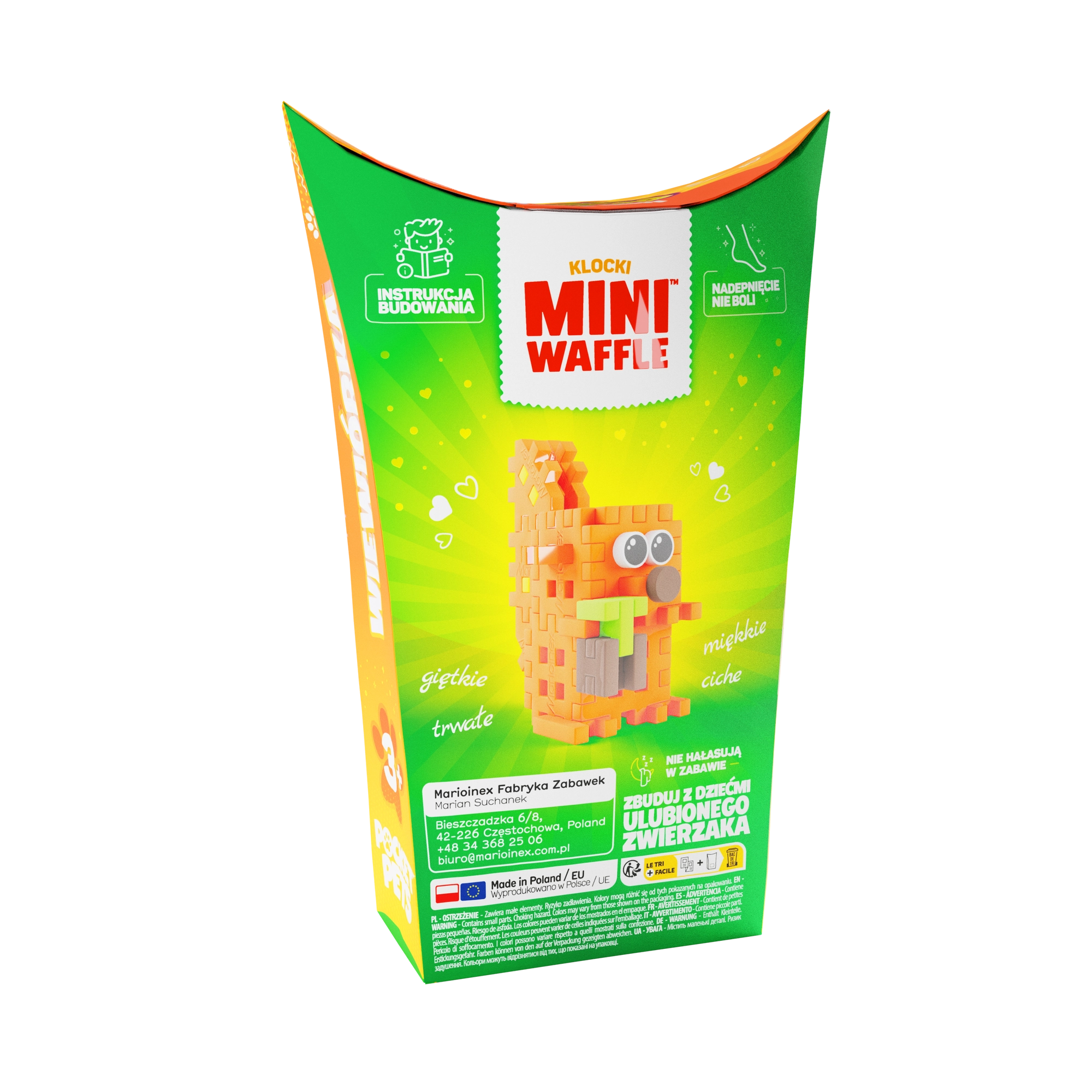 A Mini Waffle Pocket Pets sorozat zsebméretű alkotást kínál a kis építőknek. Ebből a készletből egy aranyos mókus figurát építhet, amely számos játék hősnője lehet – önállóan vagy egy nagyobb állatgyűjtemény részeként. Az építőkészlet kiválóan fejleszti a képzelőerőt, a logikus gondolkodást és a mozgáskoordinációt.