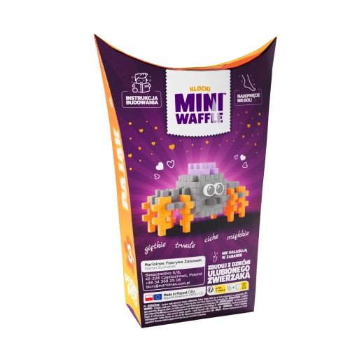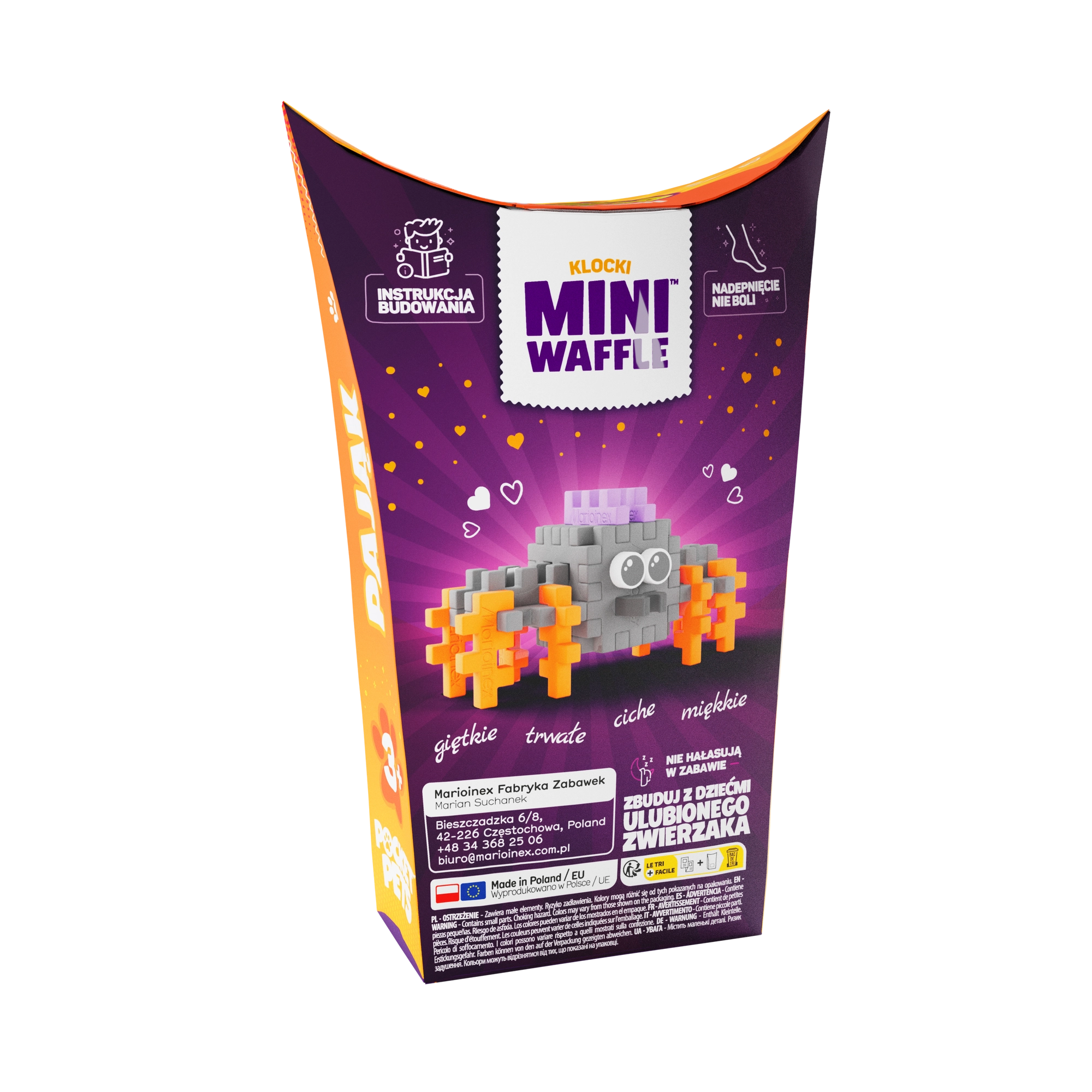 Fedezze fel a Marioinex márka Mini Waffle Pocket Pets – pók építőkészletének kreatív világát. A kompakt szett 25 színes elemmel lehetővé teszi egy aranyos pókfigura megépítését, miközben fejleszti a finommotorikát, a logikus gondolkodást és a fantáziát. Az elemek rugalmasak, tartósak és biztonságosak, könnyen össze- és szétszerelhetők, és remekül kombinálhatók más Mini Waffle szettekkel.