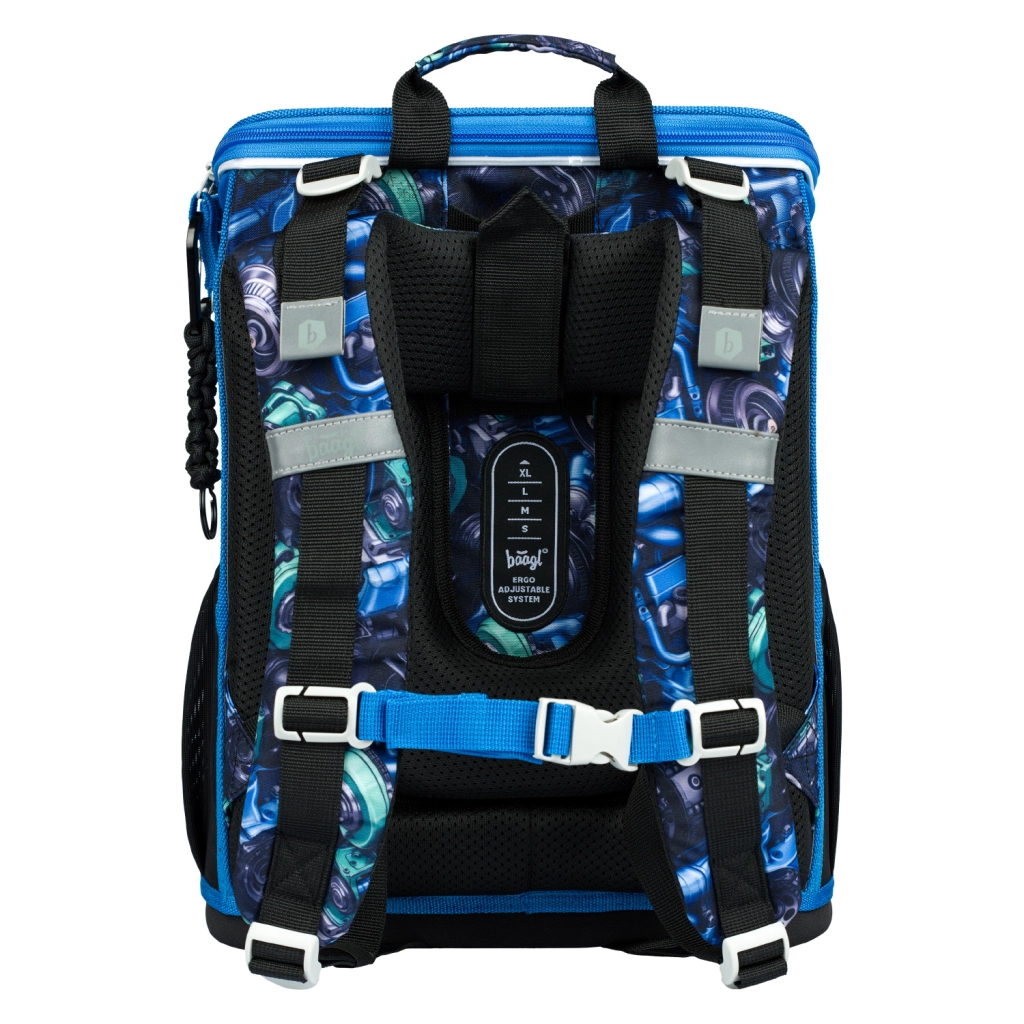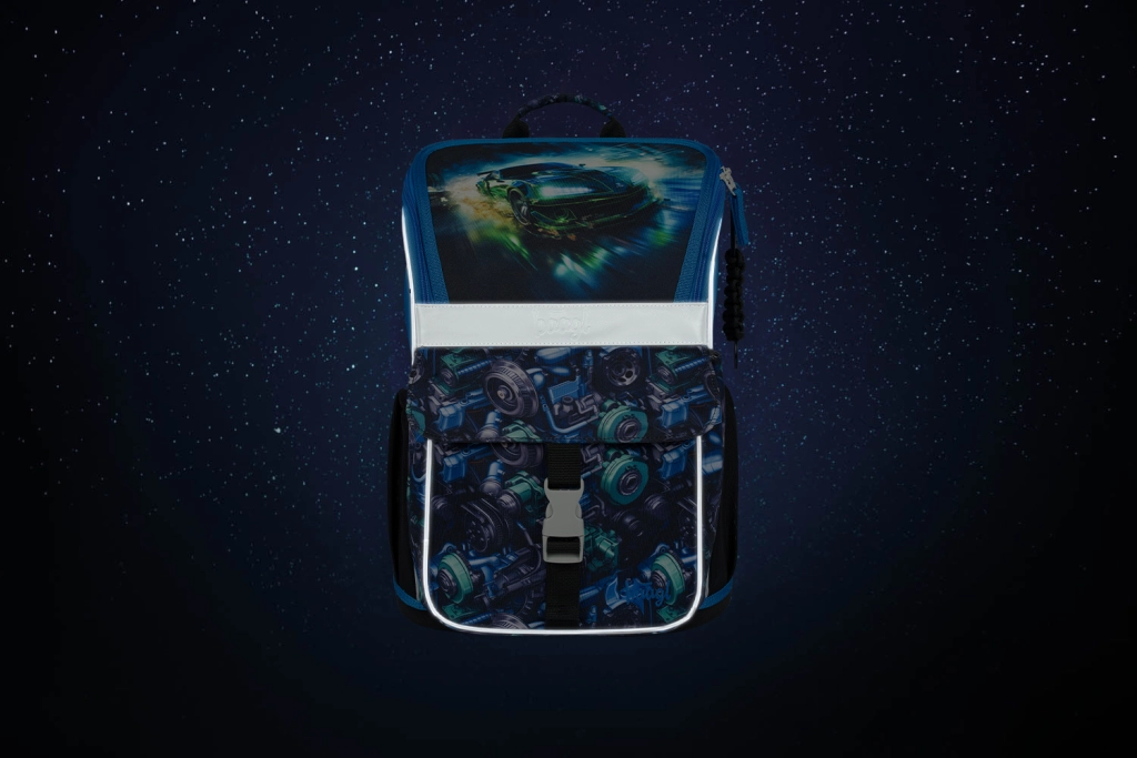 A BAAGL Zippy Versenyautó iskolai szett ideális választás már az 1. osztálytól. Az ERGO ADJUSTABLE SYSTEM csúszó állítórendszerrel ellátott ergonomikus iskolatáska tökéletesen a gyermek magasságához igazítható, kényelmet és helyes testtartást biztosít. A könnyű, stabil felépítés, a felnyitható nyitás és az átgondolt belső tagolás rendezővel és gumipánttal megkönnyíti a rendet és a gyors hozzáférést az eszközökhöz.
