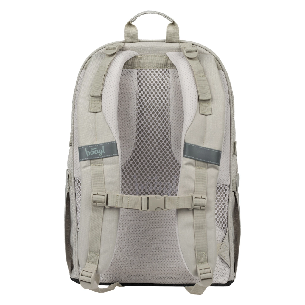 A BAAGL Skate Mist praktikus szett iskolásoknak és diákoknak egyesíti az könnyű iskolai hátizsákot gördeszka-rögzítéssel, a tágas tolltartót, a összehajtható sporttáskát, egy övtáskát és egy laptop tokot egységes dizájnban. A újrahasznosított, vízálló anyagoknak, a fényvisszaverő elemeknek és a megbízható YKK cipzáraknak köszönhetően minden iskolai napra és szabadidőre biztonságot, tartósságot és stílust kínál.