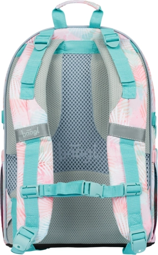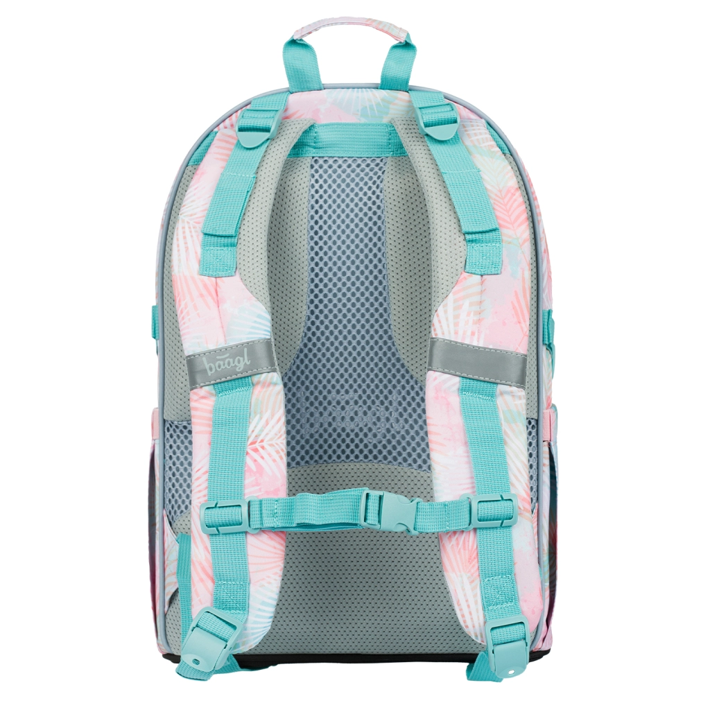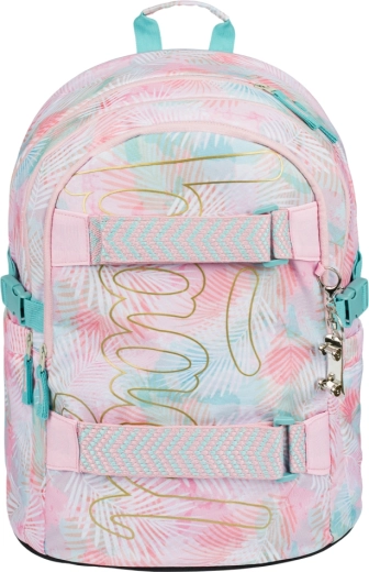 A BAAGL Skate Sunset iskolai szett ideális választás azoknak a diákoknak, akik a kényelmet, a funkcionalitást és a friss, pasztellszínű pálmaleveles dizájnt szeretnék ötvözni. A fő sztár az ergonomikus hátizsák párnázott háttal, állítható váll- és mellpántokkal, valamint kompressziós szíjakkal. A három rekesz rendszerezővel és 15"-os laptopzsebbel biztonságban és rendezetten tartja a tankönyveket és a technológiát.