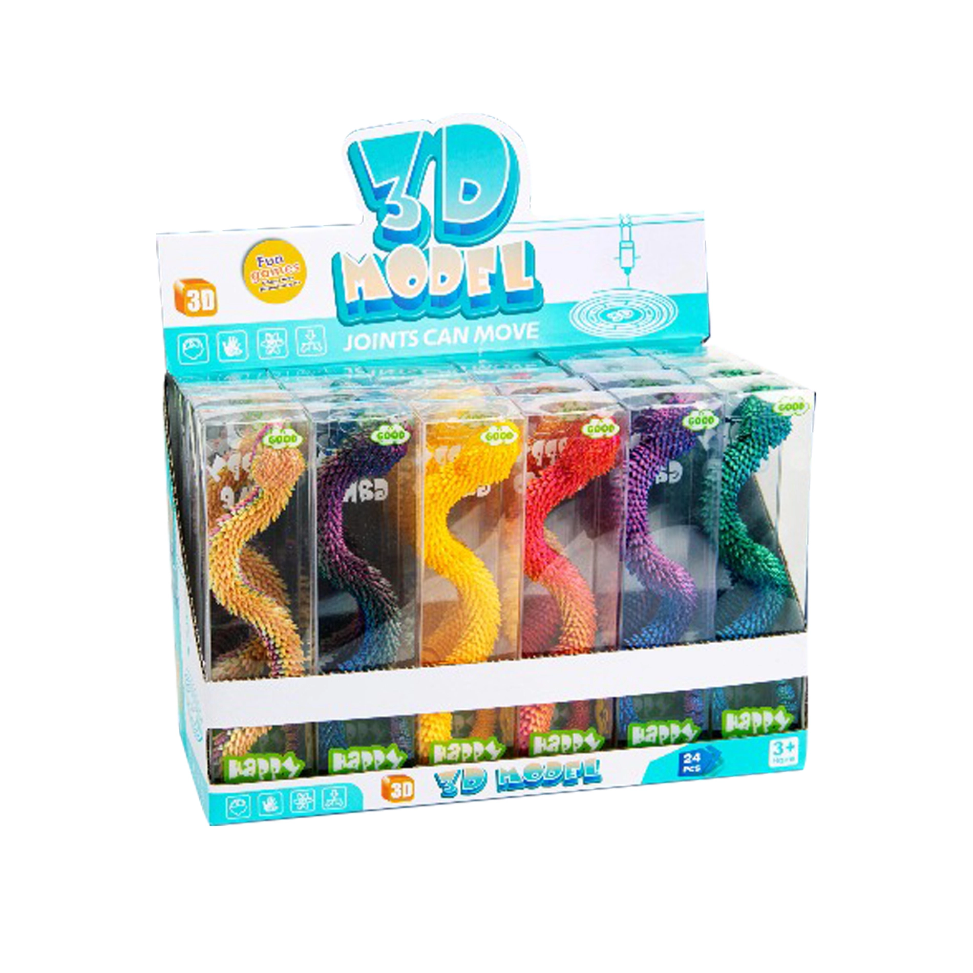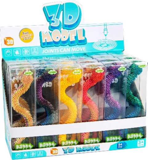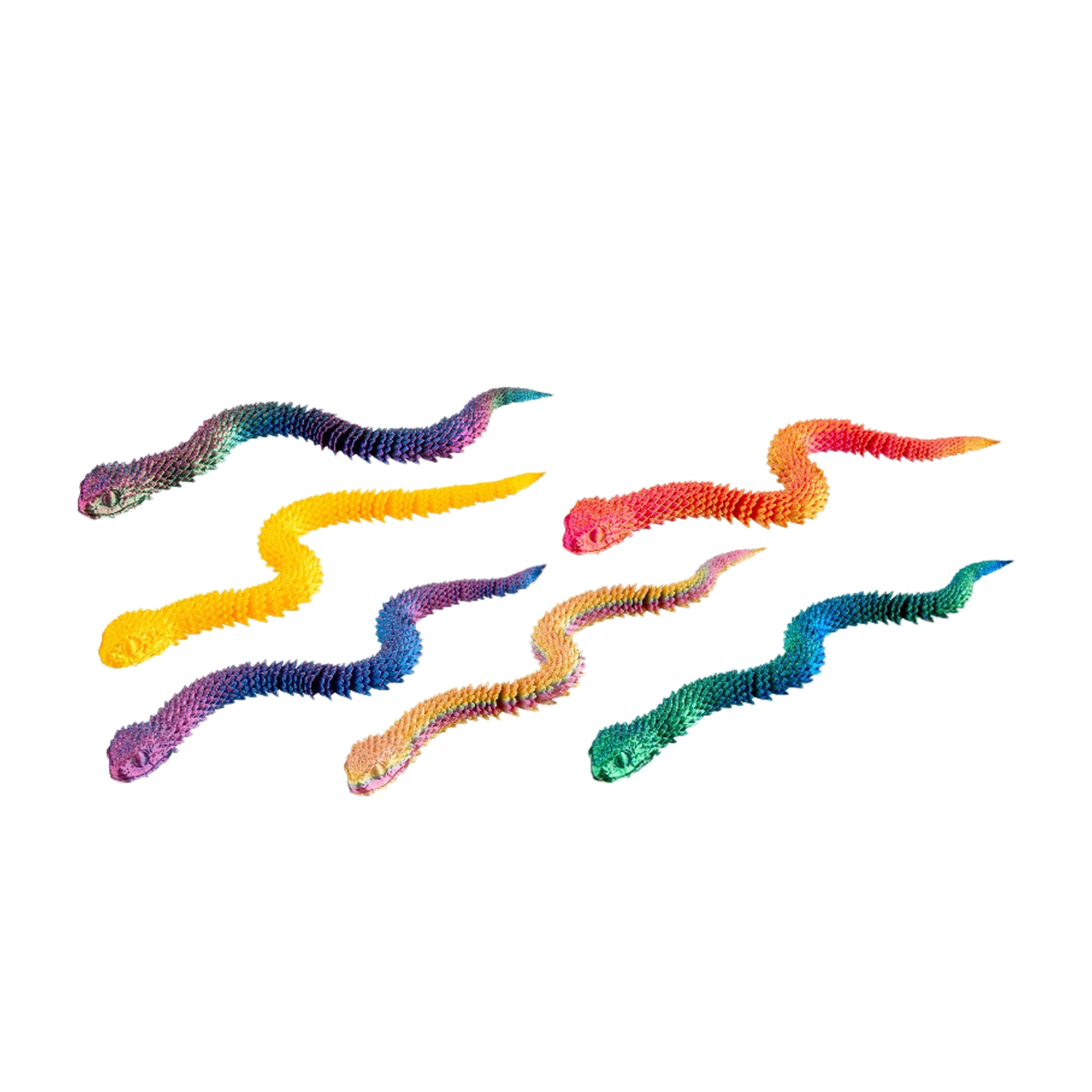 Fedezze fel a kreatív szórakozás varázsát a varázslatos 3D, vipera stílusú kígyóval. A szegmenses konstrukció lehetővé teszi a folyamatos hajlítást és formázást, így könnyedén készíthet valósághű pózokat, spirálokat vagy egyedi dekorációkat. A fémes fényű felület kiemeli a részleteket és látványos megjelenést kölcsönöz a játéknak.