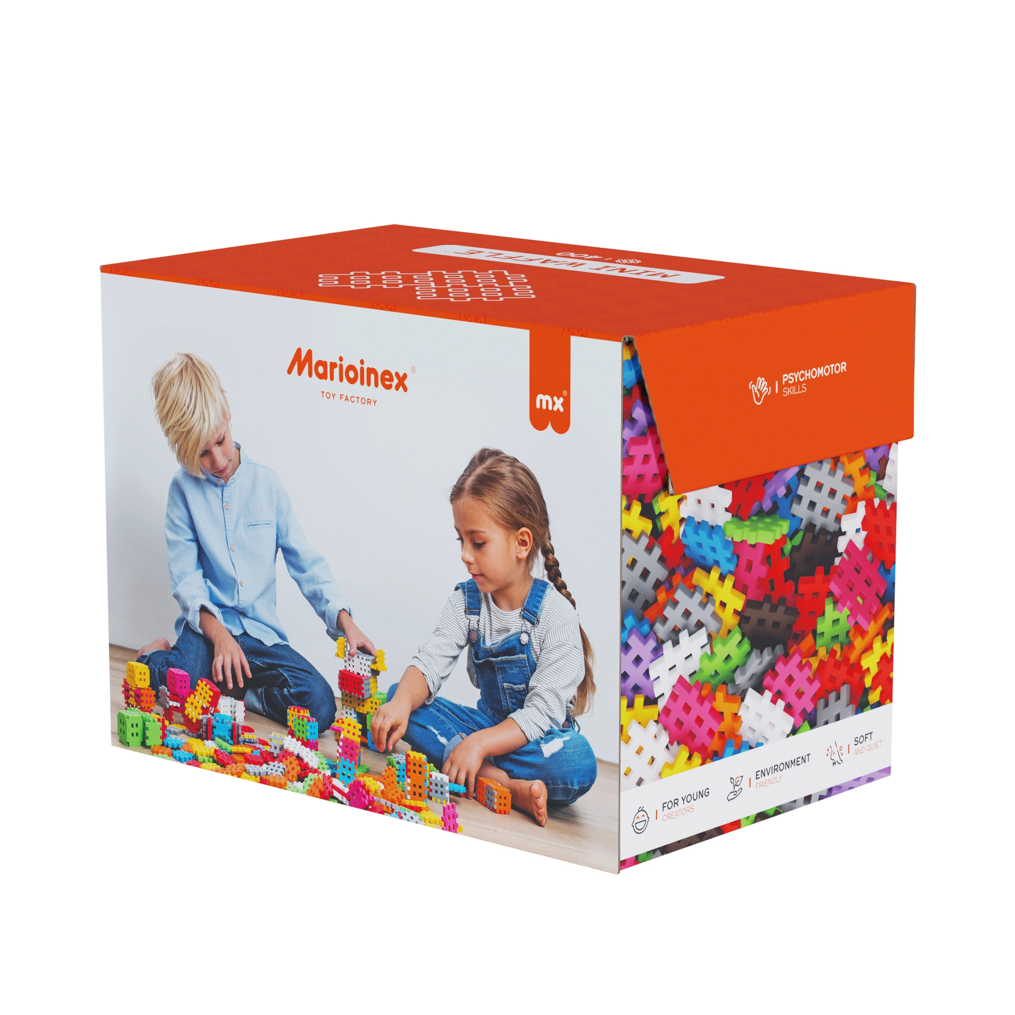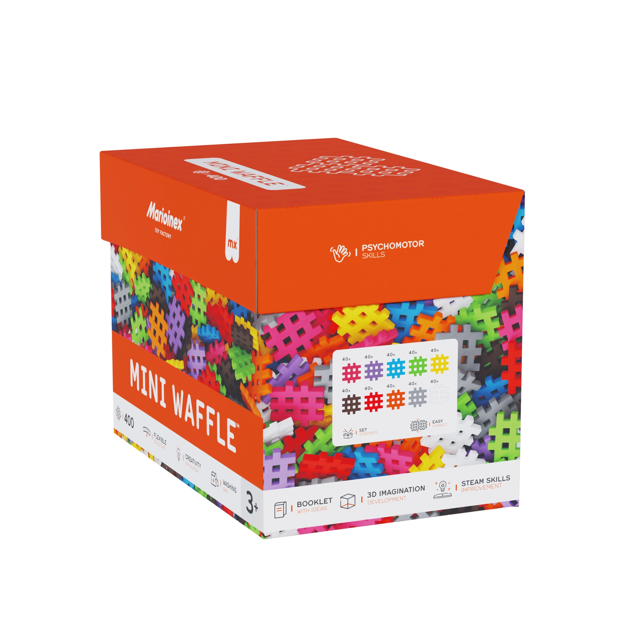 A Marioinex Mini Waffle építőkészlet játékos tanulást kínál a gyerekeknek. A puha anyagnak és az okos formának köszönhetően az elemeket könnyű összekapcsolni és szétválasztani, a kis kezek számára pedig kényelmes a fogásuk. A 400 darab, élénk színű elem ösztönzi a szabad alkotást és a leírások követését is – az egyszerű modellektől a fantáziadús 3D építményekig.