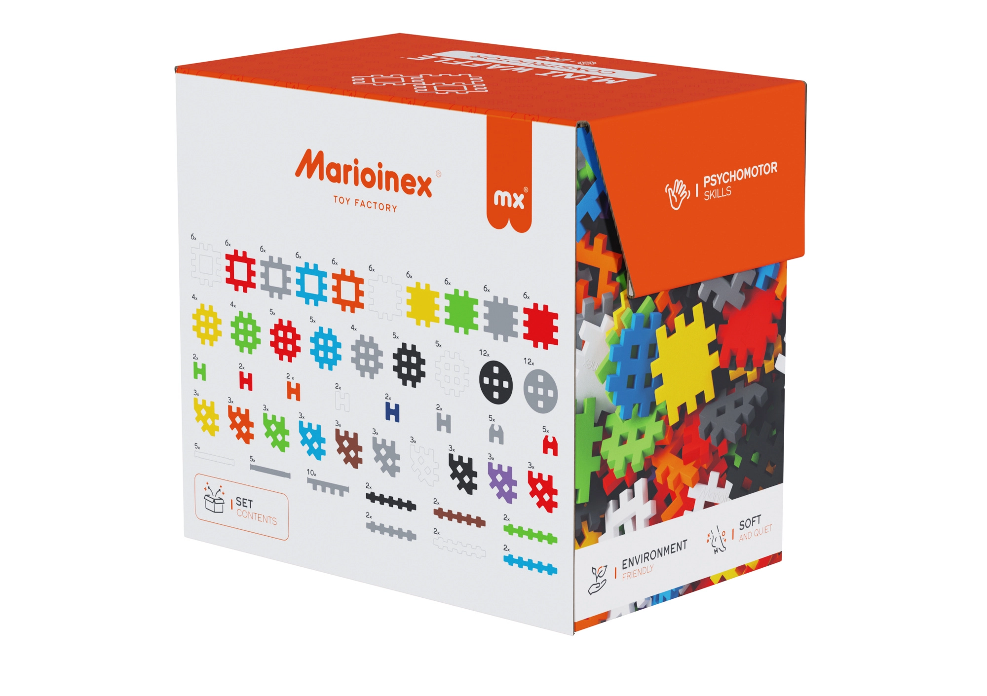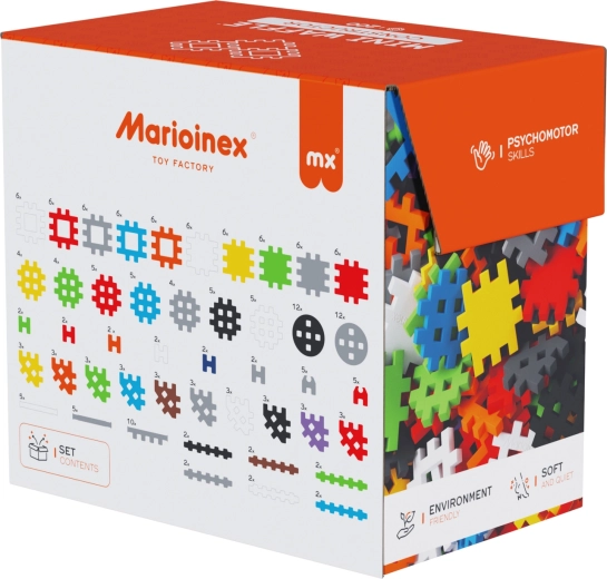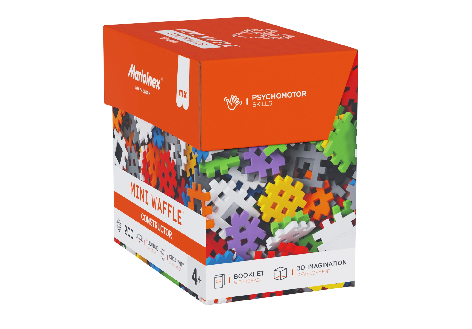 A MARIOINEX Mini Waffle Constructor építőkészlet egyszerre nyújt szórakozást és tanulást a gyerekeknek. Az egyedi elemforma révén a modellek könnyen összeállíthatók és stabilan tartanak, mégis egyszerűen újra szétszedhetők. A csomag része egy inspiráló füzet ötletekkel, amely segít az első építéseknél és tovább ösztönzi a fantáziát.