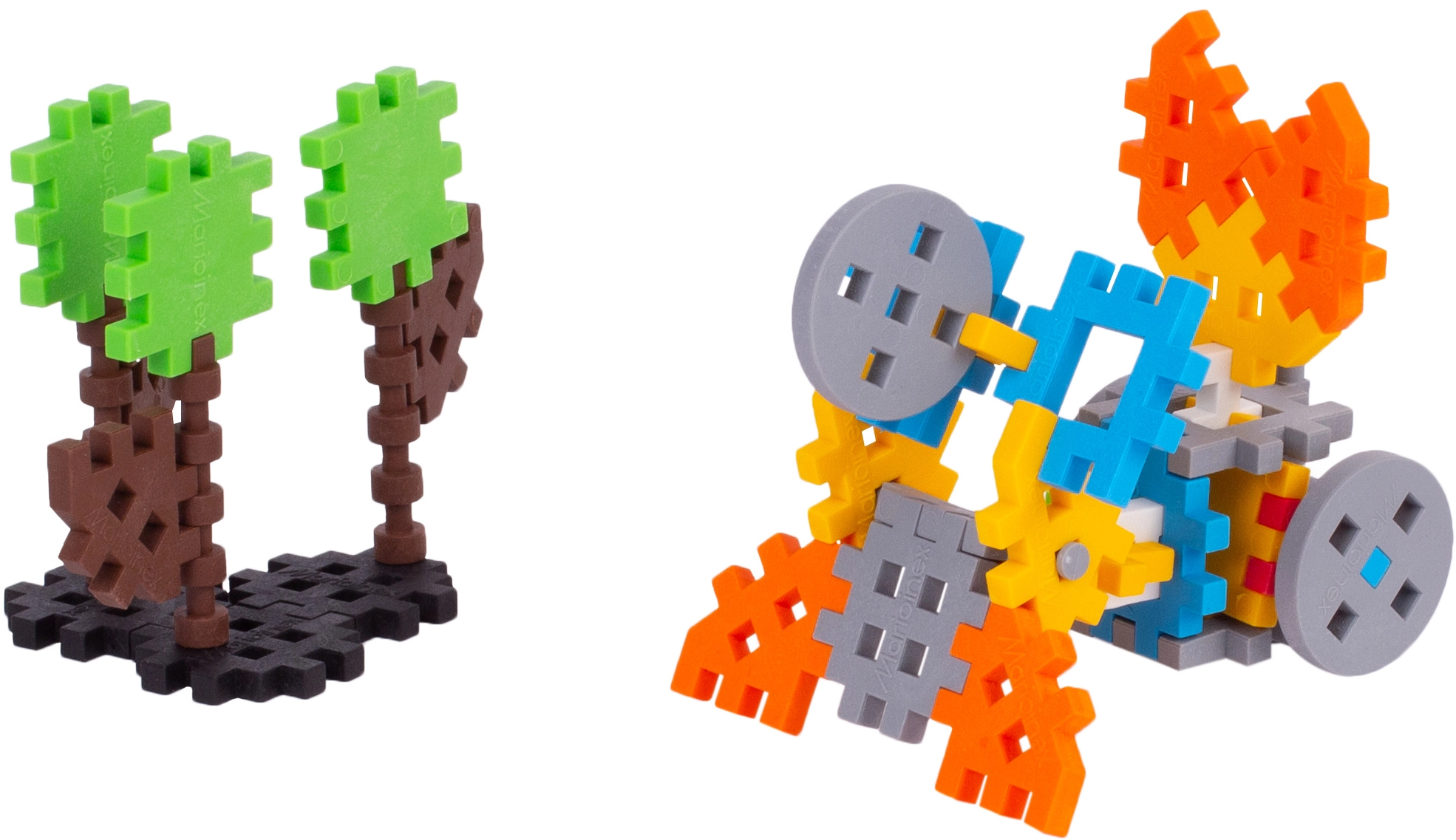 A biztonságos, puha és színes elemek kis kezekhez igazodva kényelmes és intuitív építést tesznek lehetővé. A gyerekek járműveket, figurákat, fákat és egyedi konstrukciókat alkothatnak – csak a képzelet szab határt.