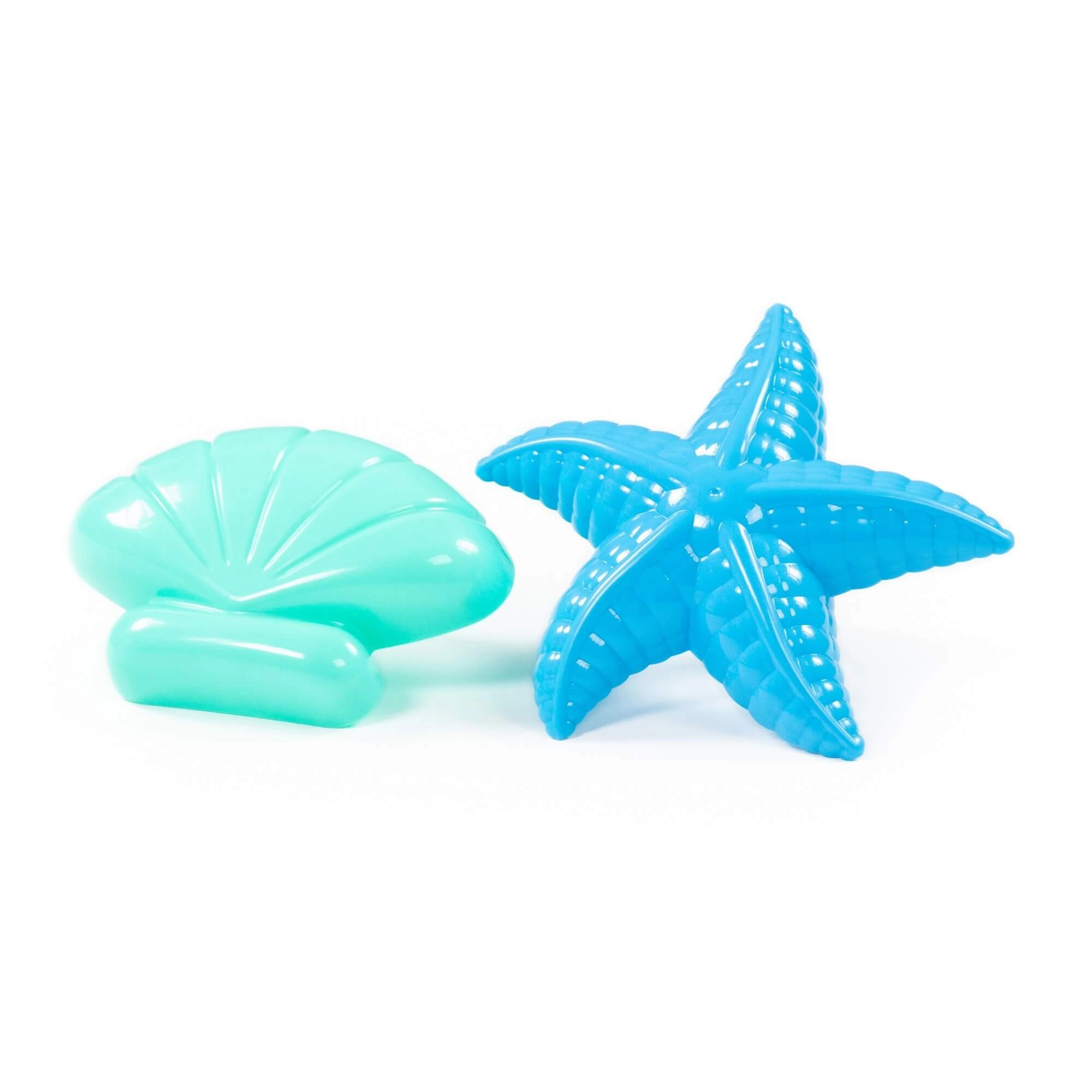 Ezzel a két darabos készlettel, amely egy tengeri csillag és egy kagyló formából áll, a gyerekek könnyedén készítenek szép homoklenyomatokat. A sima felületnek és a kiemelt részleteknek köszönhetően a homok jól elválik, az elkészült formák pedig tiszták és határozottak.