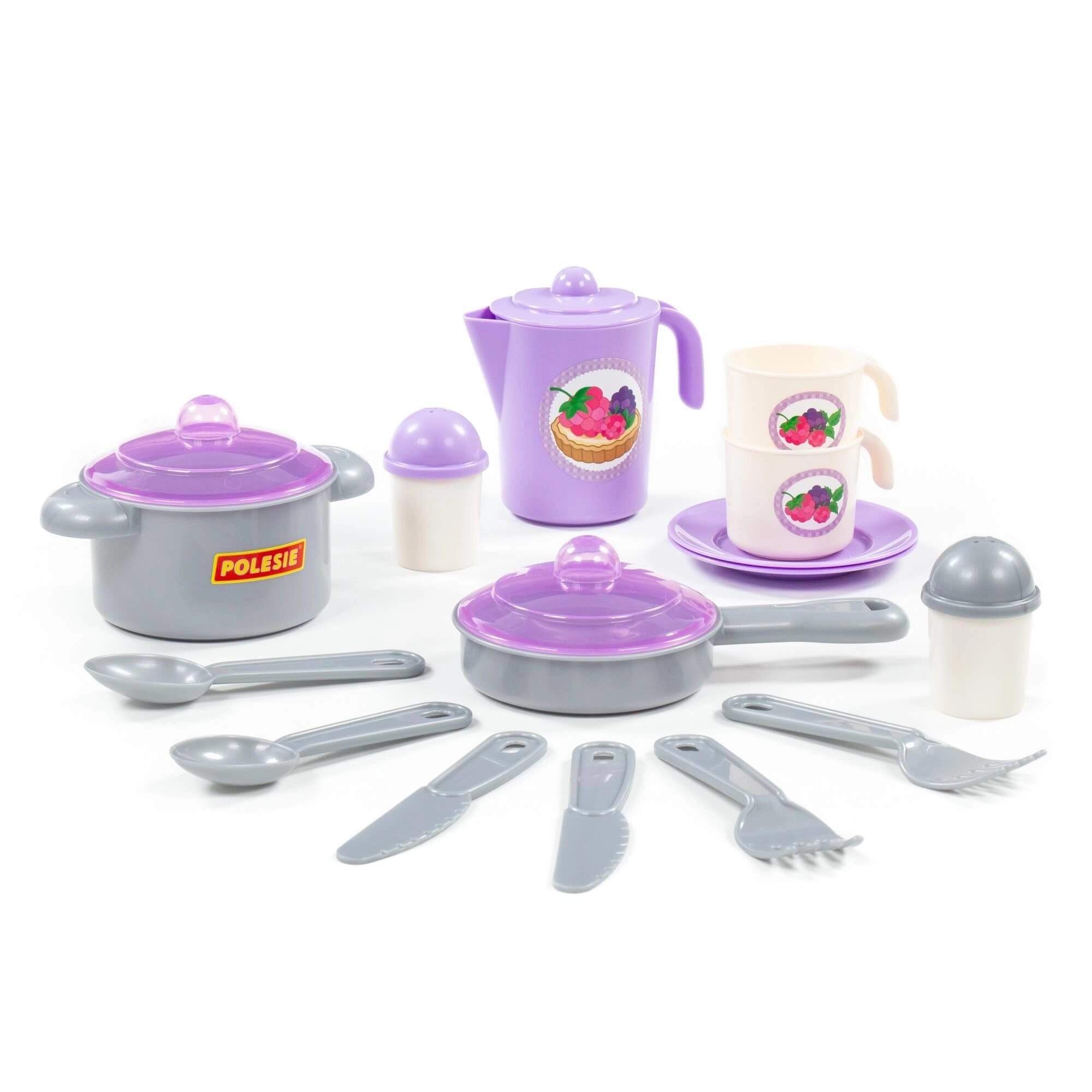 A Nastenka gyermek konyhai készlet teljes felszerelést nyújt a főzős és tálalós szerepjátékhoz. A 18 praktikus elemmel a gyerekek könnyedén megszervezhetik saját teadélutánjukat vagy kis vendégséget a barátoknak. A könnyű műanyag edények kényelmes fogókkal jól kézre állnak, könnyen tisztíthatók, és készen állnak a mindennapos játékra.