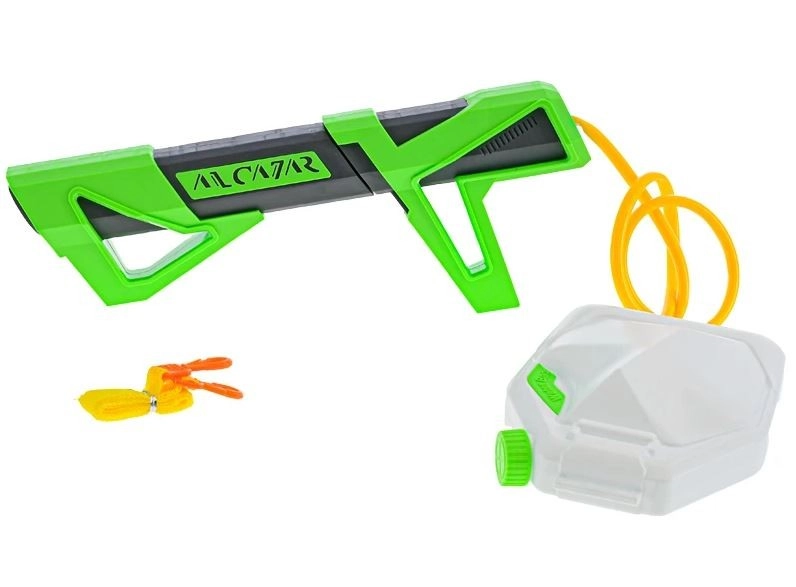 Ez a külső tartállyal ellátott vízpisztoly hosszabb játékot biztosít gyakori utántöltés nélkül. Csak töltsd meg a tartályt vízzel, rögzítsd a pánttal, és már indulhat is az akció. Az ergonomikus forma és az alacsony súly a kisebb gyerekeknek is megkönnyíti a használatot.