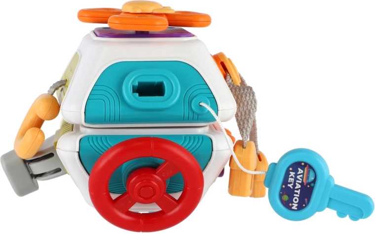 Támogatja a finommotorikát, a logikus gondolkodást és az ok-okozati összefüggések megértését. A gyerekek gyakorolják a fogást, erősítik a koordinációt, miközben színes elemekkel és mozgó részekkel szórakoznak, mint például a propeller vagy a forgó kerekek. A magyarországi tanúsítás a biztonság és a minőségi kivitelezés garanciája.