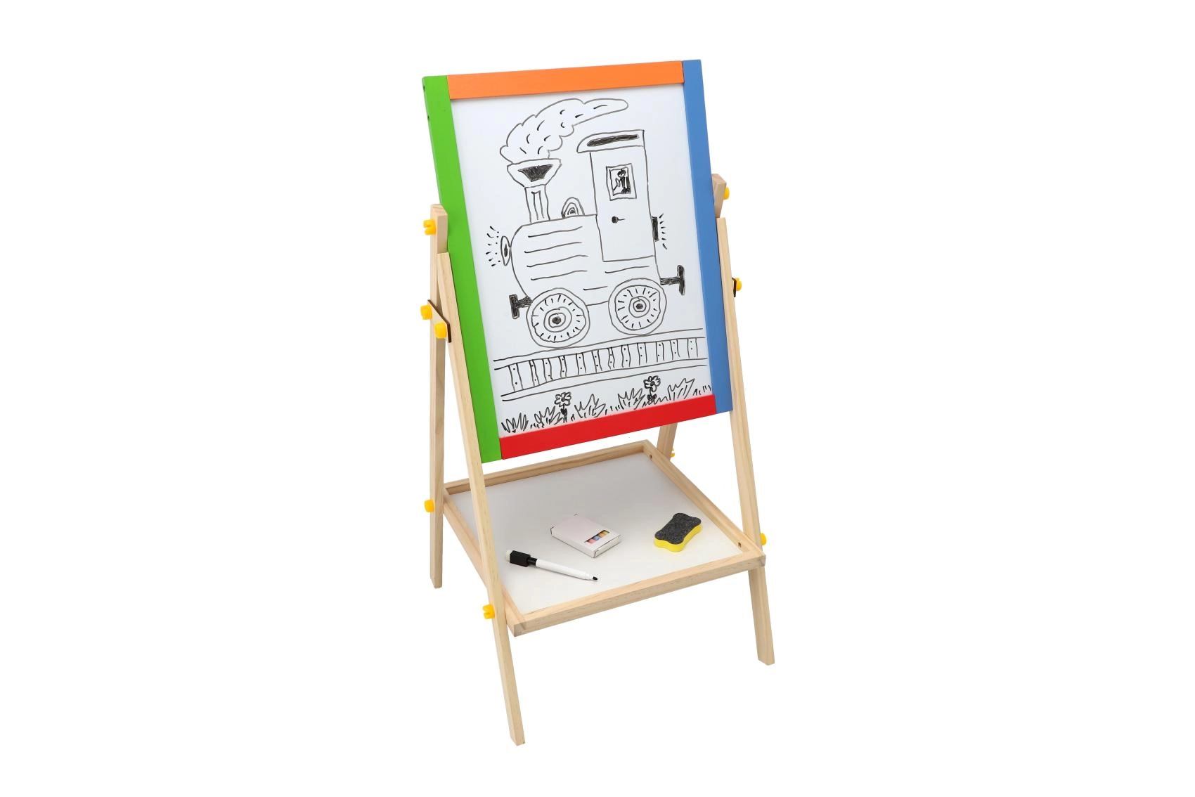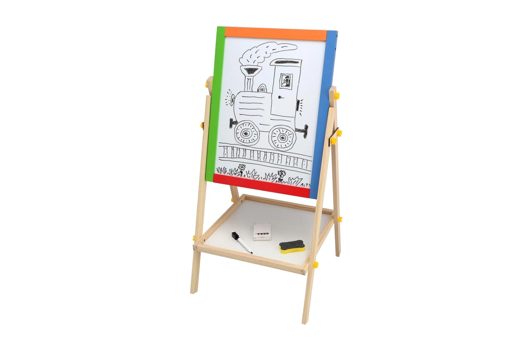 Ez a kétoldalas tábla fejleszti a kreativitást, a finommotorikát és az első iskolai készségeket. A gyerekek váltogathatják a krétás rajzolást és a filces írást, mágnesekkel tanulhatnak betűket és gyakorolhatják a számolást – mindezt egy helyen.