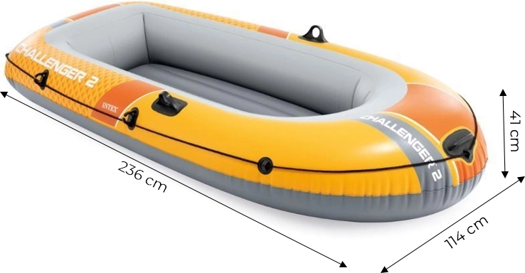 A könnyű és tartós INTEX CHALLENGER 2 felfújható csónak 2 személy számára ideális állóvizekre, kirándulásokra és horgászathoz. 3 légkamrával a nagyobb biztonságért, kényelmes és stabil i-Beam padlóval, Boston szeleppel a gyors felfújáshoz és leeresztéshez, valamint praktikus körbefutó biztonsági kötéllel rendelkezik. A csomag tartalma egy kézipumpa, 2 evező és egy javítófolt.