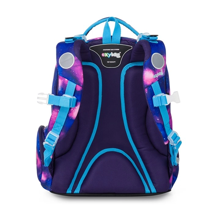 Az Oxy Go Pillangó szett galaktikus, pillangós dizájnja megjelenésével és funkcionalitásával is örömet szerez. A hátizsák kényelmét a ergonomikus, párnázott hát és az állítható vállpántok adják, a hosszabb pántvégeket kampók rögzítik. A több rekesz és zseb áttekinthető tárolást biztosít tankönyveknek, füzeteknek és apróságoknak, az oldalzsebekbe kulacs is elfér.
