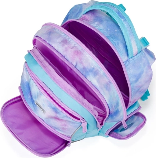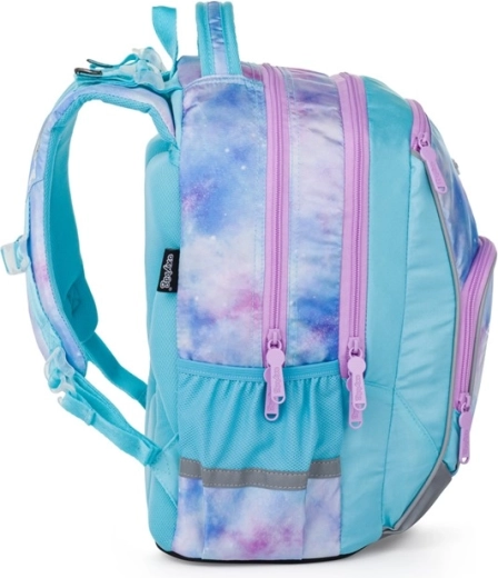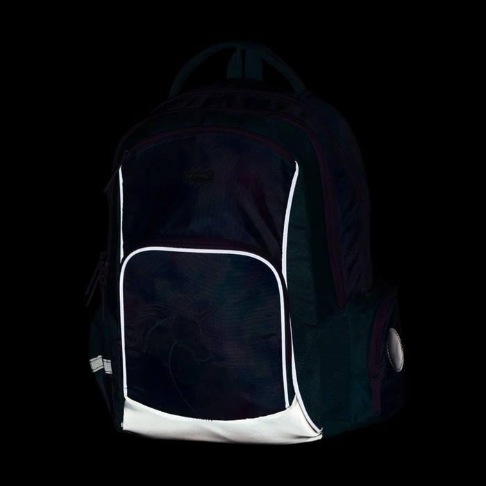 A stílusos Oxy Go Unicorn iskolatáska pasztell galaktikus mintával első pillantásra magára vonja a figyelmet. Anatómiailag formázott, légáteresztő hátkialakítást, párnázott, állítható vállpántokat, tágas 22 l-es tárolókapacitást számos zsebbel és masszív, vízálló aljat kínál. Nem hiányoznak a fényvisszaverő elemek a biztonságért, valamint az átgondolt rendszerezés a mindennapos iskolába járáshoz.
