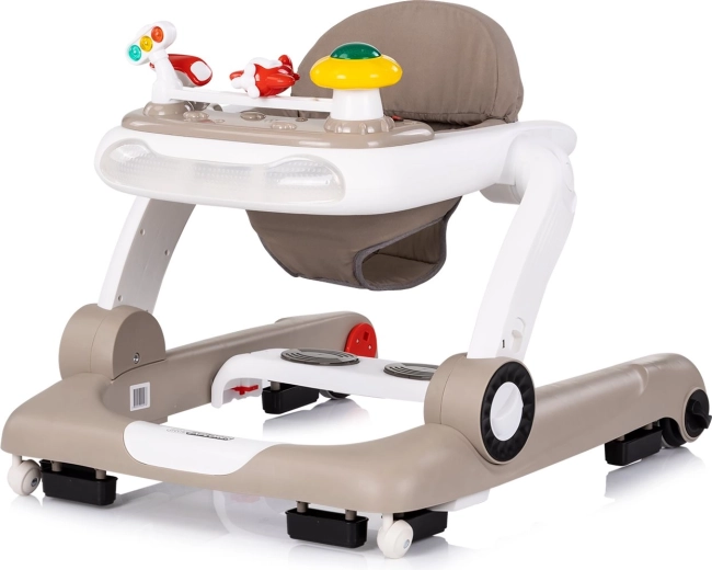 Az Interaktív 4 az 1-ben Little Explorer bébi járássegítő mindent kínál, amire gyermekének szüksége van a világ biztonságos felfedezéséhez. Használható járássegítőként, játékközpontként gombokkal, fényekkel és játékokkal, rugózós üzemmódban az izmok erősítésére, valamint tolójátékként/kis kocsiként az önálló járás támogatására. A széles, stabil alap, a puha, párnázott ülés és a magasságállítás alkalmazkodik a gyermek növekedéséhez.