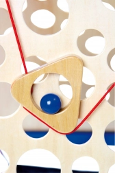 A falak közé kifeszített szövetkosár felfogja a leeső golyókat, így semmi nem vész el. A zsinórok egyenletes vezetése könnyű a gyerekeknek, és támogatja a türelmet.