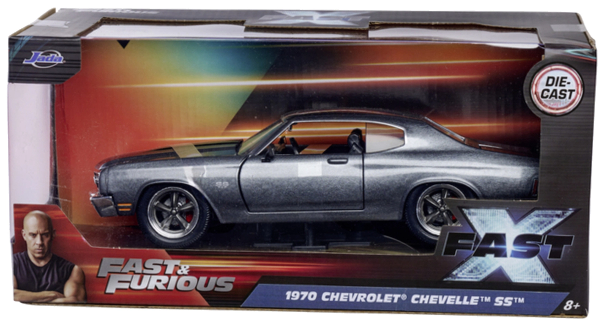 Részletesen kidolgozott gyűjtői modell a Jada Toys márkától, a FAST & FURIOUS széria által inspirálva. Fém karosszériaval, nyitható ajtókkal és csomagtartóval, valamint a kultikus 1970 Chevrolet Chevelle SS hű arányaival 19 cm hosszban – ideális a filmek rajongóinak és stílusos dekorációnak egyaránt.