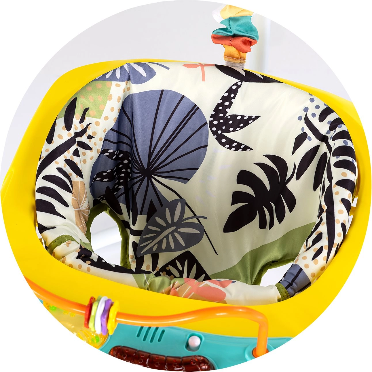 Puha párnázás és 2 szintű magasságállítás gondoskodik az ergonómiáról és a kényelemről, hogy az ugráló együtt nőjön babájával.