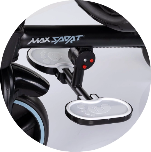 A maximális komfort érdekében a tricikli puha textilpárnázással, biztonsági övvel, felhajtható lábtartókkal és tágas elülső-hátsó kosarakkal rendelkezik. A két magasságban állítható szülői tolókar biztos irányítást nyújt. Az összecsukható kupola napellenzővel óv a naptól, az italtartó pedig két pozícióban rögzíthető.