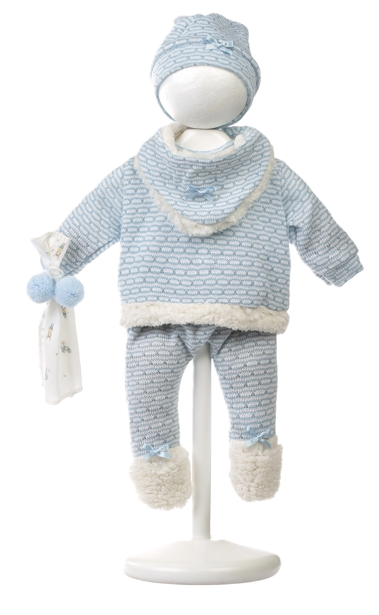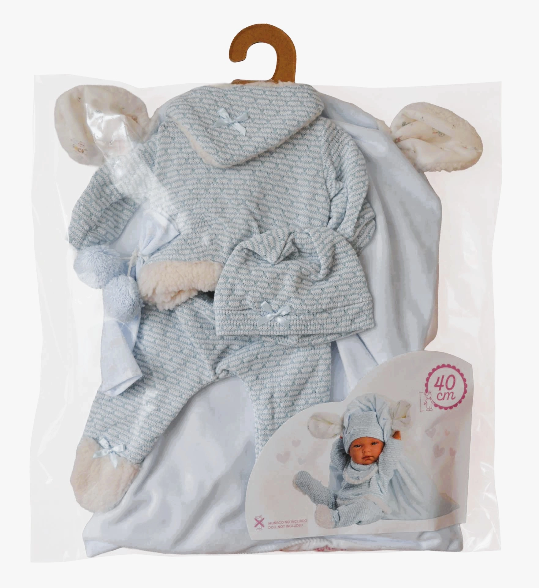Stílusos, 5 részes babaruha-szett 40–42 cm-es babákhoz mindennel, amire a kis dadusoknak szükségük lehet. Puha darabok harmonizáló színekben, praktikus kiegészítők és egy pihe-puha alvókendő. Kézzel készült Spanyolországban a minőségi kidolgozásért, a puha anyagokért és a kényelmes öltöztetésért. Ideális kreatív szerepjátékhoz és a babáról való gondoskodáshoz 3 éves kortól.