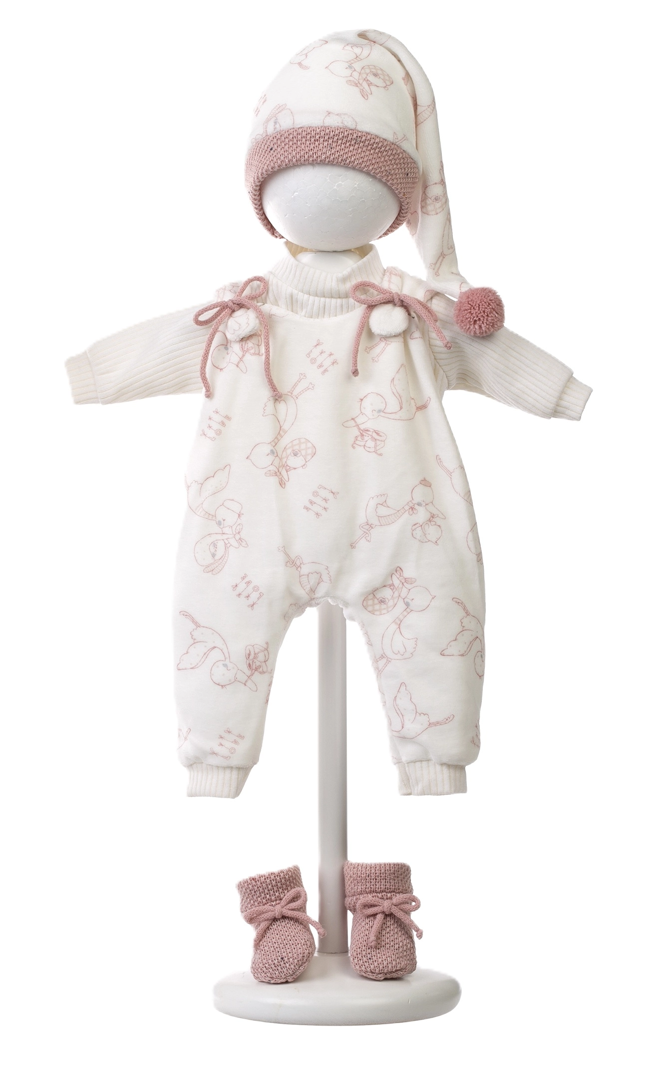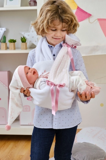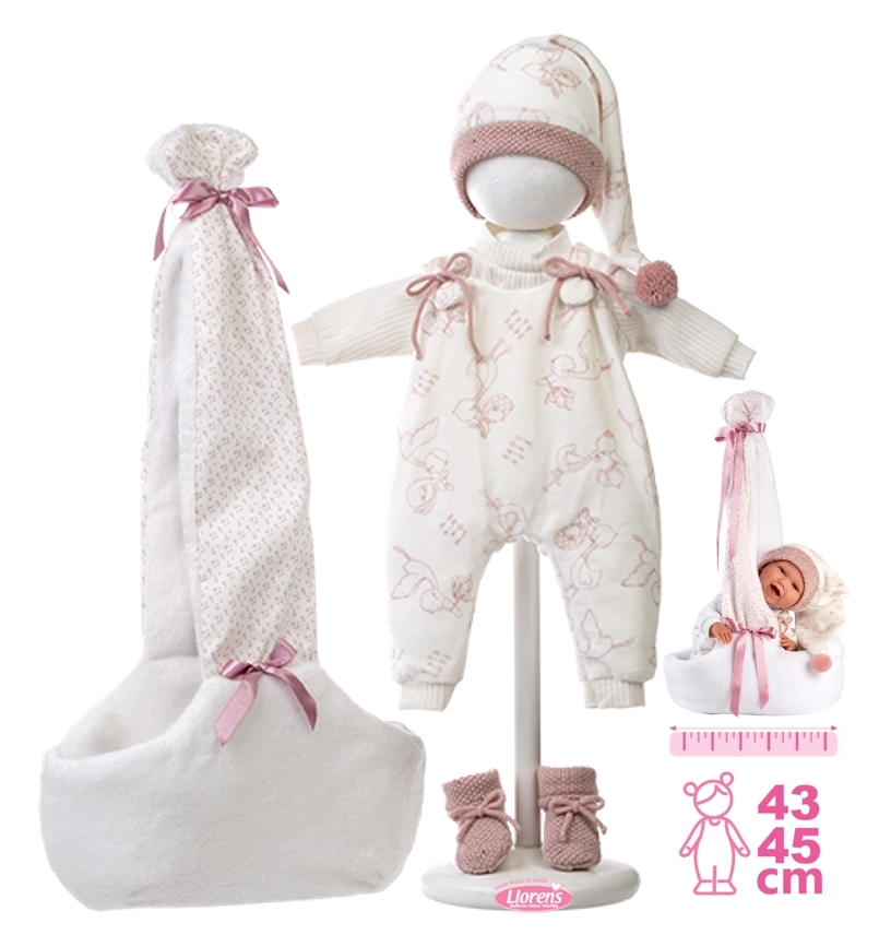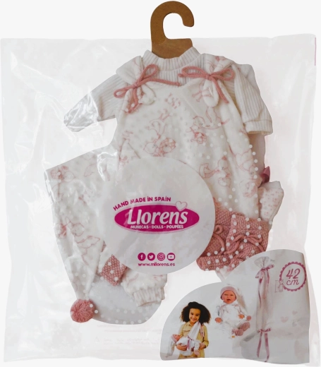 A szett kézzel készül Spanyolországban, és a Llorens NEW BORN 40–42 cm-es babákhoz készült. A minőségi varrásnak és részleteknek – mint a masnik, bordázott szegélyek vagy kötött cipőcskék – köszönhetően a ruhácskák élethűek és elegánsak. Kiváló a finommotorika, az empátia és a képzelőerő fejlesztésére.