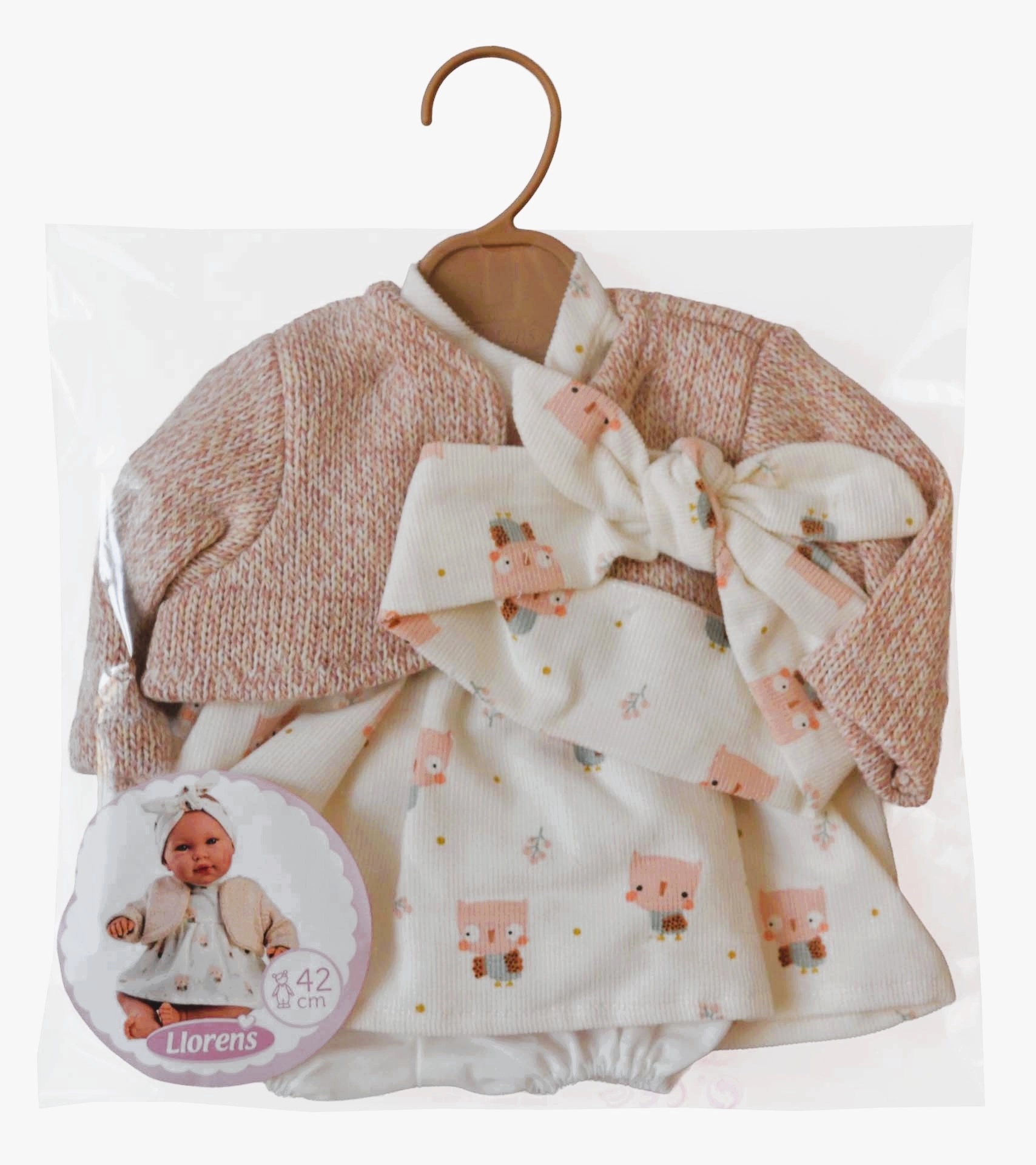Stílusos, 4 részes babaruha a NEW BORN babákhoz a Llorens márkától, 40–42 cm méretben, amely örömet szerez minden kis anyukának. A kiváló minőségű, kézi készítés Spanyolországban garantálja a precíz kidolgozást és a hosszú élettartamot. A praktikus csomagolás fóliatasakban vállfával megkönnyíti a tárolást és a hordozást. 3 éves kortól ajánlott.